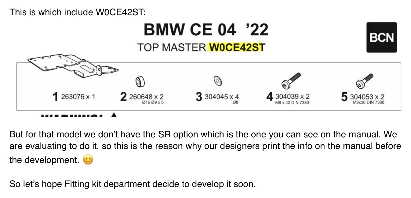 - Roller: BMW CE 04 11kW (Ex: Niu M1 Pro, Super Soco CUX, Silence S01)
