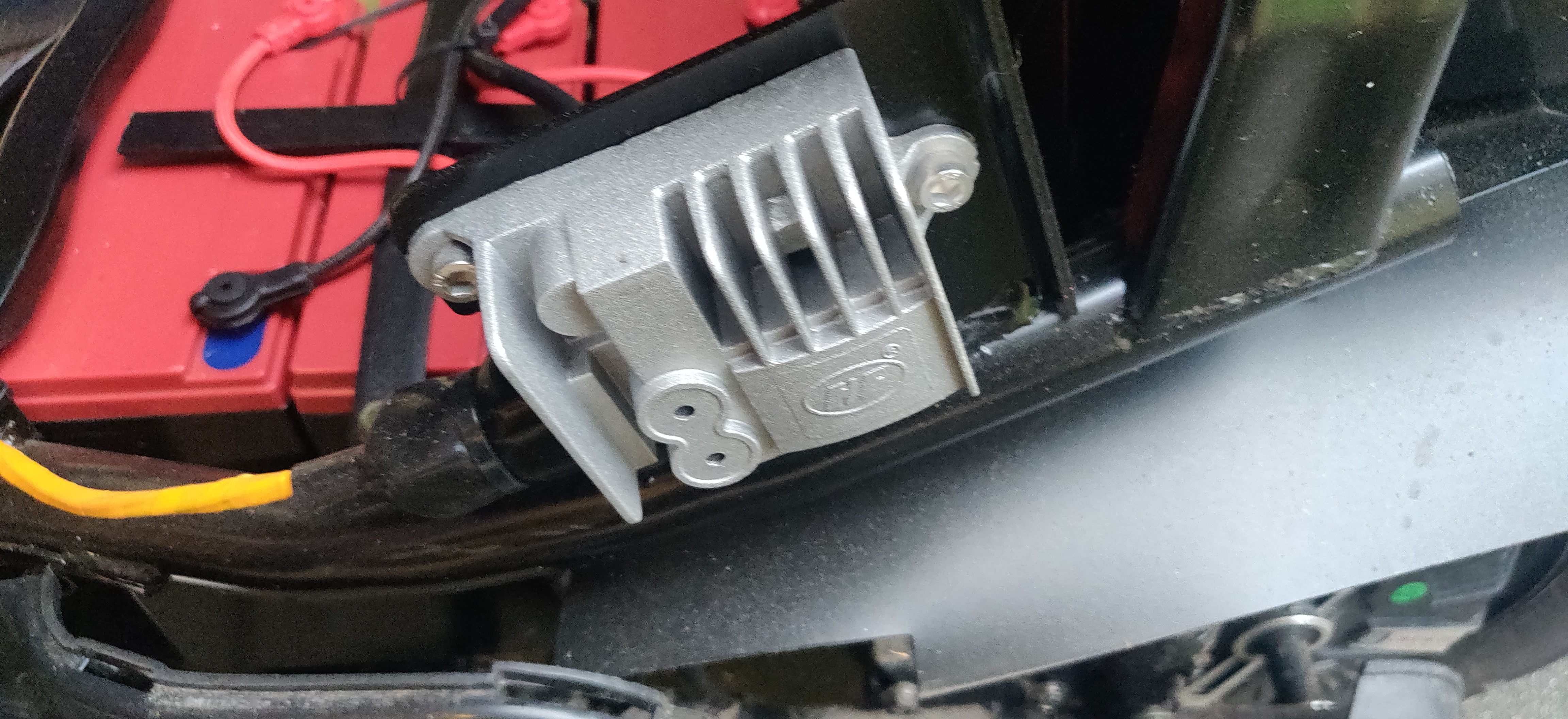 Bei mir links unter dem Sitz. Dazu muss die Schraube vorne in der Mitte unter der Ladebuchse raus, im Helmfach ein paar und das linke Seitenteil, 1 Schraube sitzt etwas versteckt unten am Trittbrett.