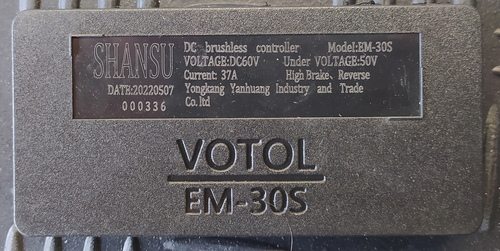 Nun zur Endgeschwindigkeit und dem verbauten Controller. Bei mir ist ein VOTOL / EM-30S verbaut, ich habe von der Abdeckung