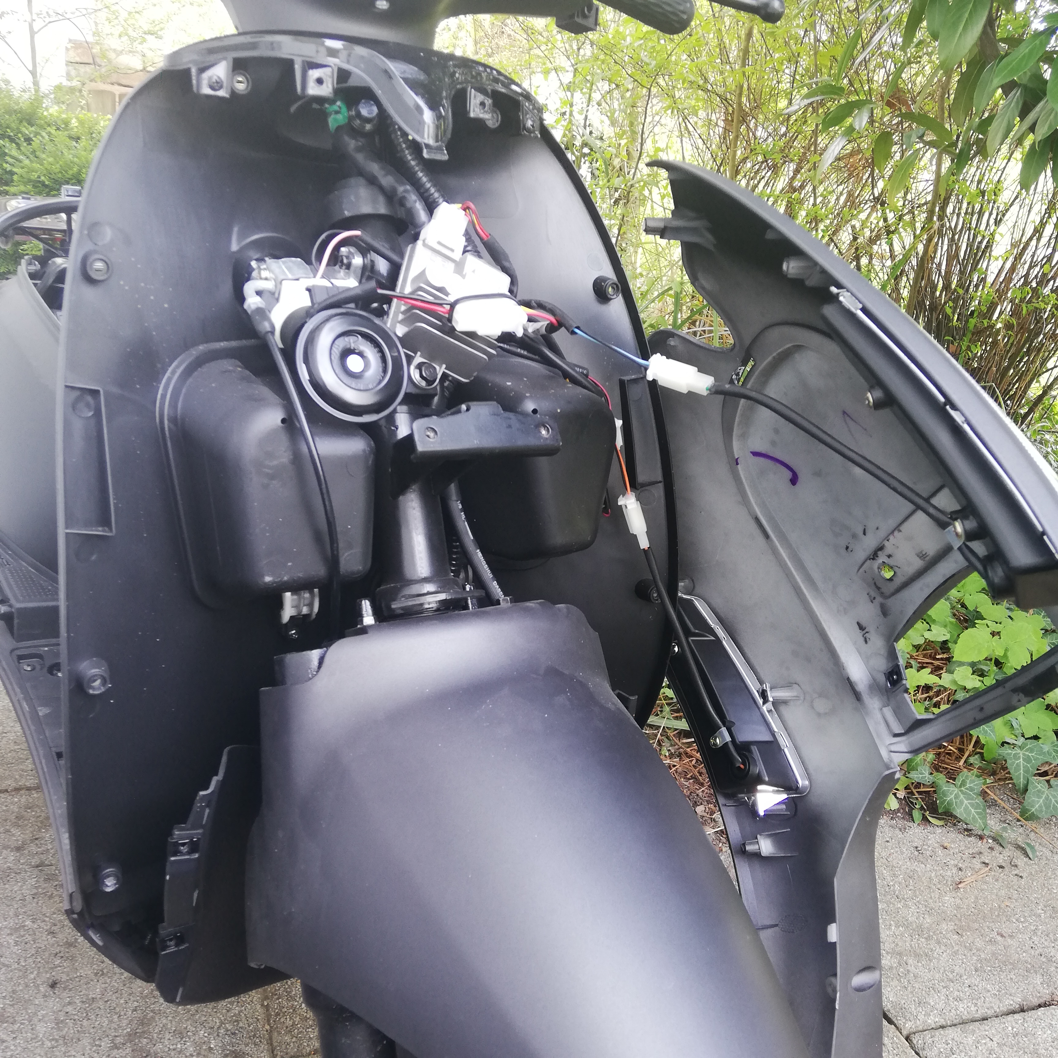 Jedenfalls die Kunststoffverkleidung (6 Schrauben: 4 x PH2 + 2x 10er Nuss)unterm Sitz und die vordere Schürze (so 10-20 PH2 Schrauben und 2x Imbus).