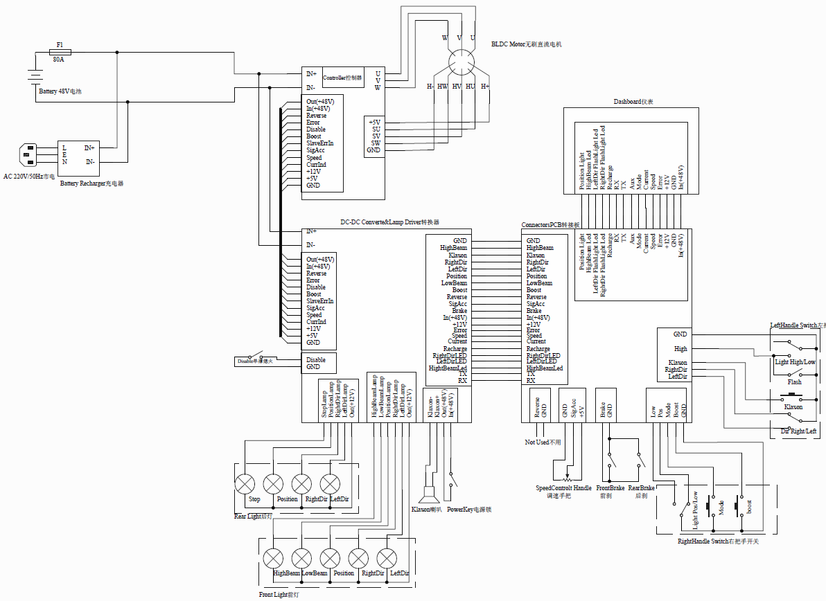 Aus geht , Standlicht auch , Schalte ich auf Licht , fängt das Hinterrad an zu drehen, schalte ich Licht auf Fernlicht oder Bremse dann gibt der Motor um so mehr Gas. ( Das Licht an sich Funktioniert wie auch alles andere wie es soll ).