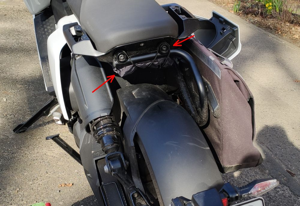 Ich habe ein Mopped-Verbandspäckchen in ein Stück einer Rucksackhaube (regendichtes Gewebe dunkel) eingewickelt und mit Gummis unter die Sitzbank geschnallt. Das geht mit dem Halter für die Seitentasche prima.
