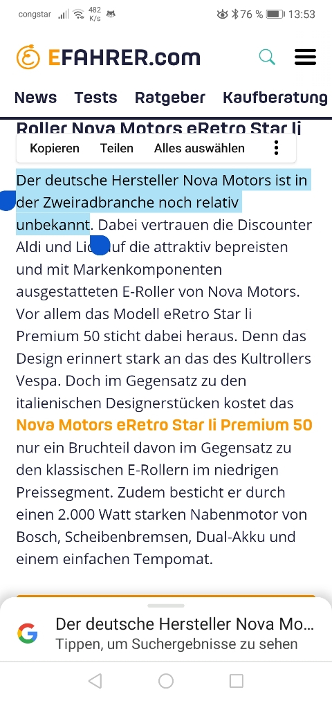 NOVA MOTORS gibt aber den Roller als deutsches Fabrikat an.