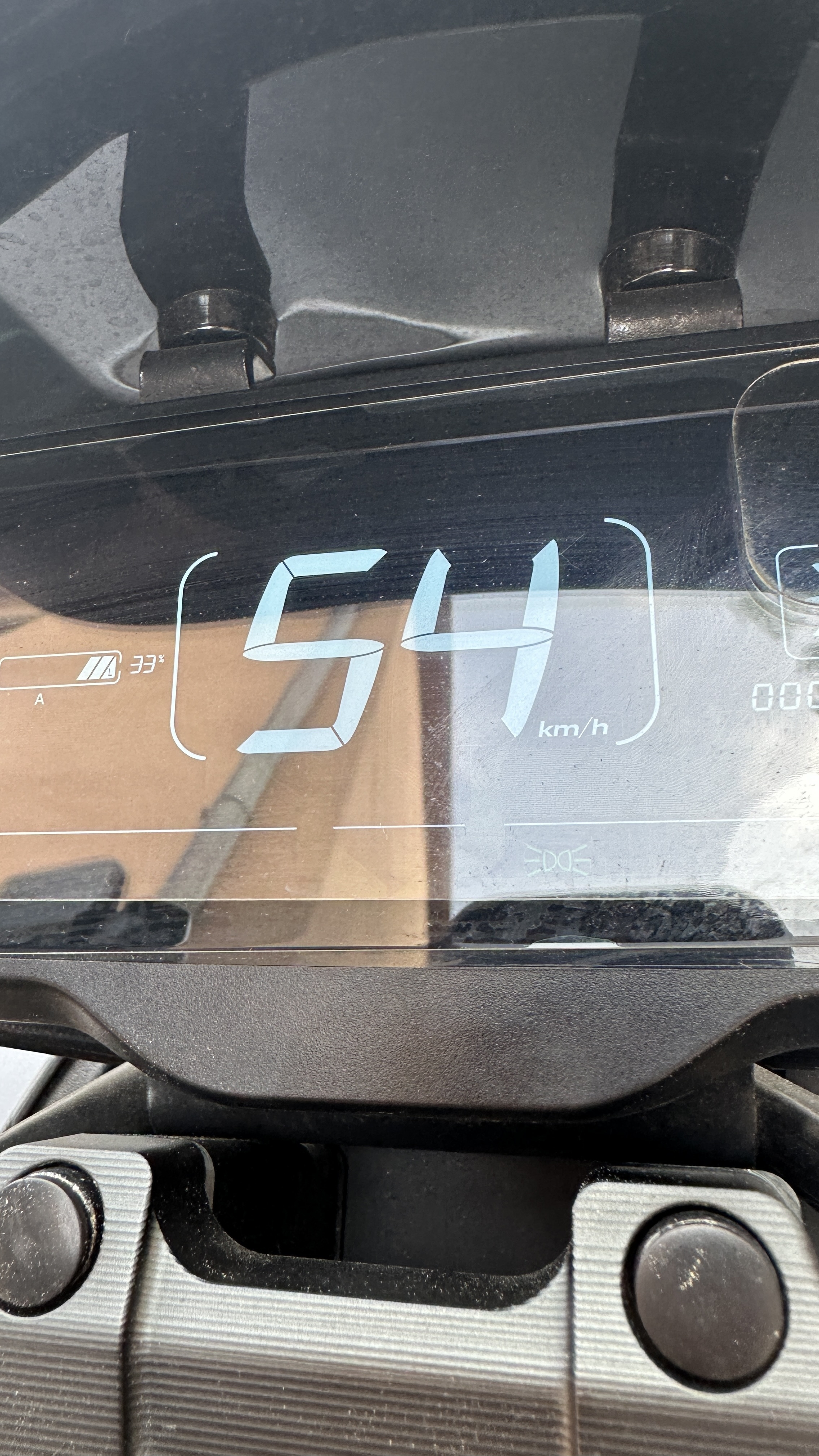 Meiner beschleunigt aus dem Stand bis GPS 60-62 km/h. Ab 55-56 km/h einfach den Gasgriff zurück und wieder voll aufdrehen und er läuft konstant 55 km/h !!! auf der Geraden und Bergab. Bis zum nächsten Halt und wieder voll beschleunigen.