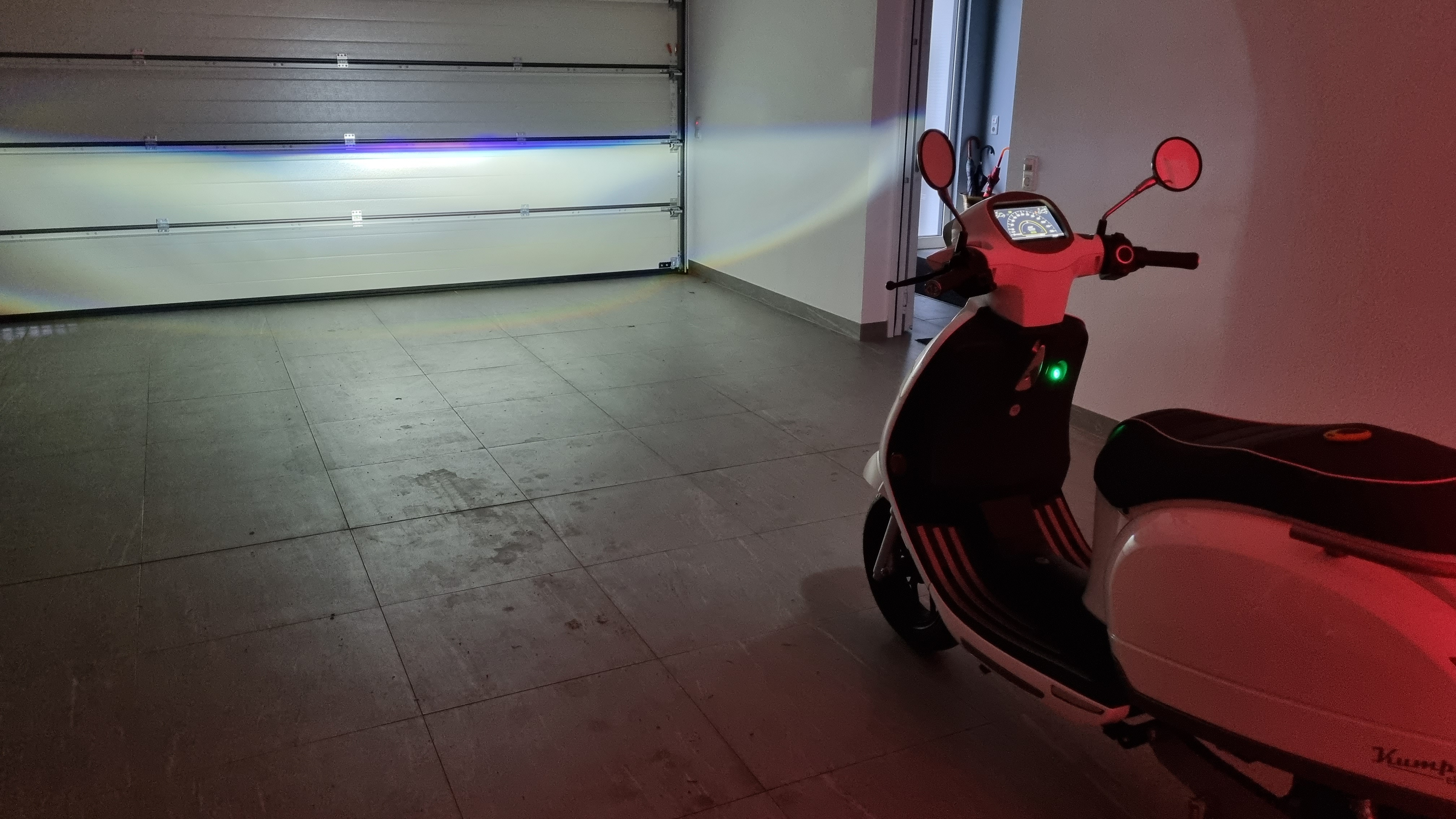 Jetzt hatte ich die Gelegenheit, beide Modelle, alt (2021) und neu (2022), zu vergleichen und mein Eindruck wurde bestätigt. Der alte Scheinwerfer lässt zwar ebenfalls den Bereich direkt vor dem Vorderrad dunkel, leuchtet die Fahrbahn aber wesentlich breiter aus, was ich auch unter Sicherheitsaspekten deutlich angenehmer finde. Auch wenn die Testbedingungen nicht ideal sind, so kann man auf den Bildern sicher den Unterschied erkennen.