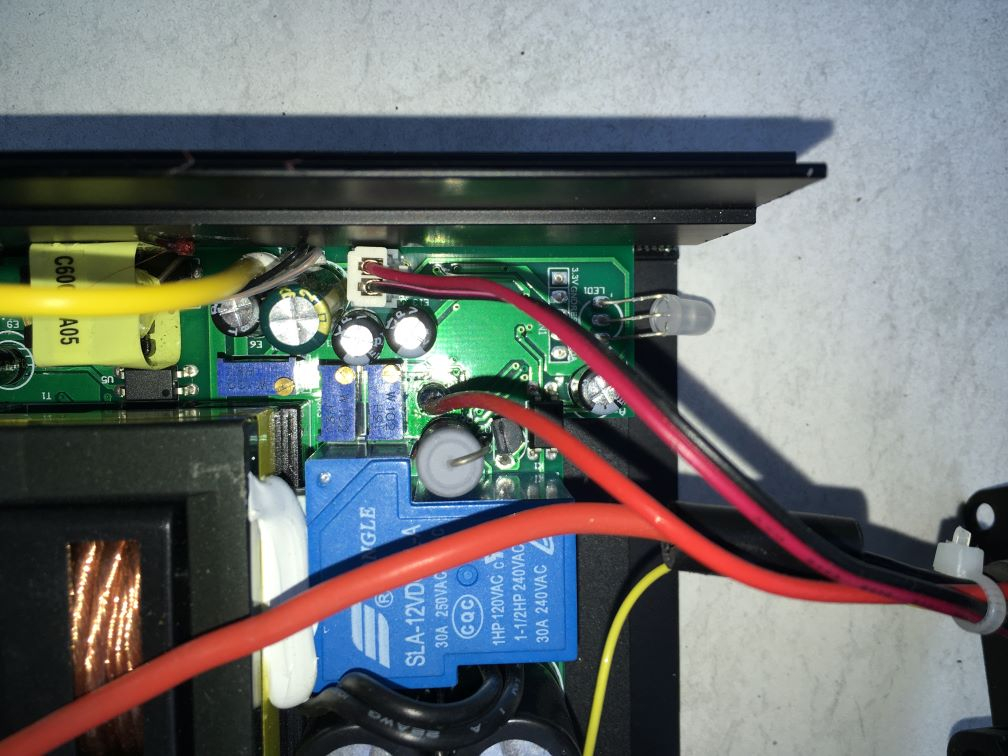 Weil ich das Ladegerät ja gerade offen hatte habe ich noch eine Schleife am Minusanschluss des Ladesteckers angeschlossen ( die roten Strippen im Bild ) um auch mal ein Ampermeter oder mal eben kurz das Zangenampermeter an zu Klemmen. Der Lader bringt bei mir 8,6 Amper.