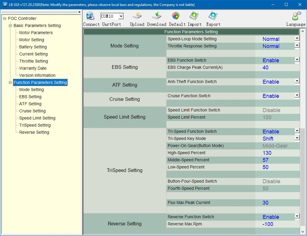 Die endgültige Version der Controller-Einstellungen LBMC072122SHK3AP-M29 (LBC100.029D). Jetzt funktioniert alles perfekt. Die Höchstgeschwindigkeit beträgt 58 km/h.