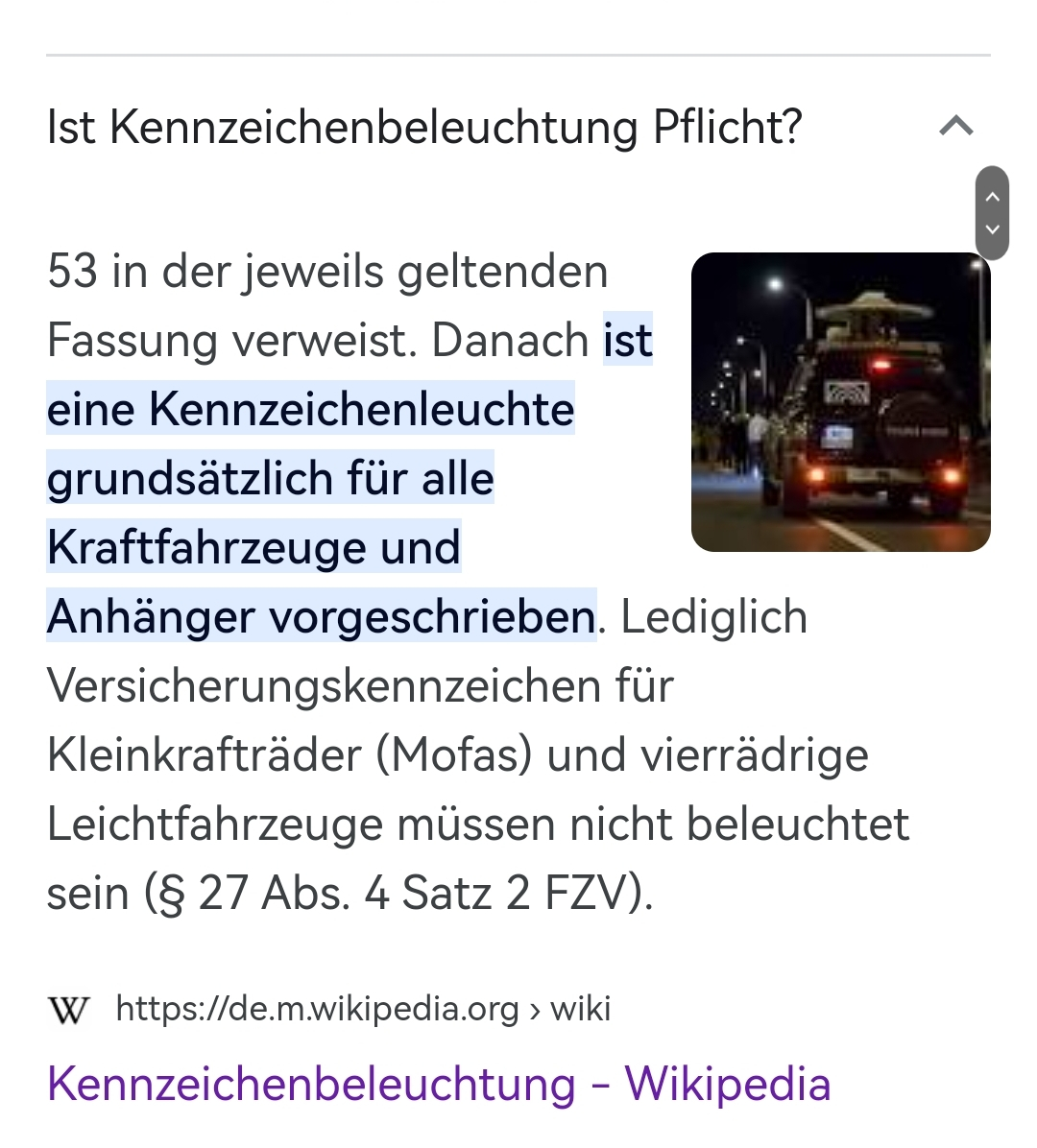 Ja genau und das ist auch der Grund, das sich die Behörde an der Nummenschildbeleuchtung "hochzieht".Uwe72 hat geschrieben: ↑Do 15. Jun 2023, 15:31Was heißt den Bauart bestimmt ?