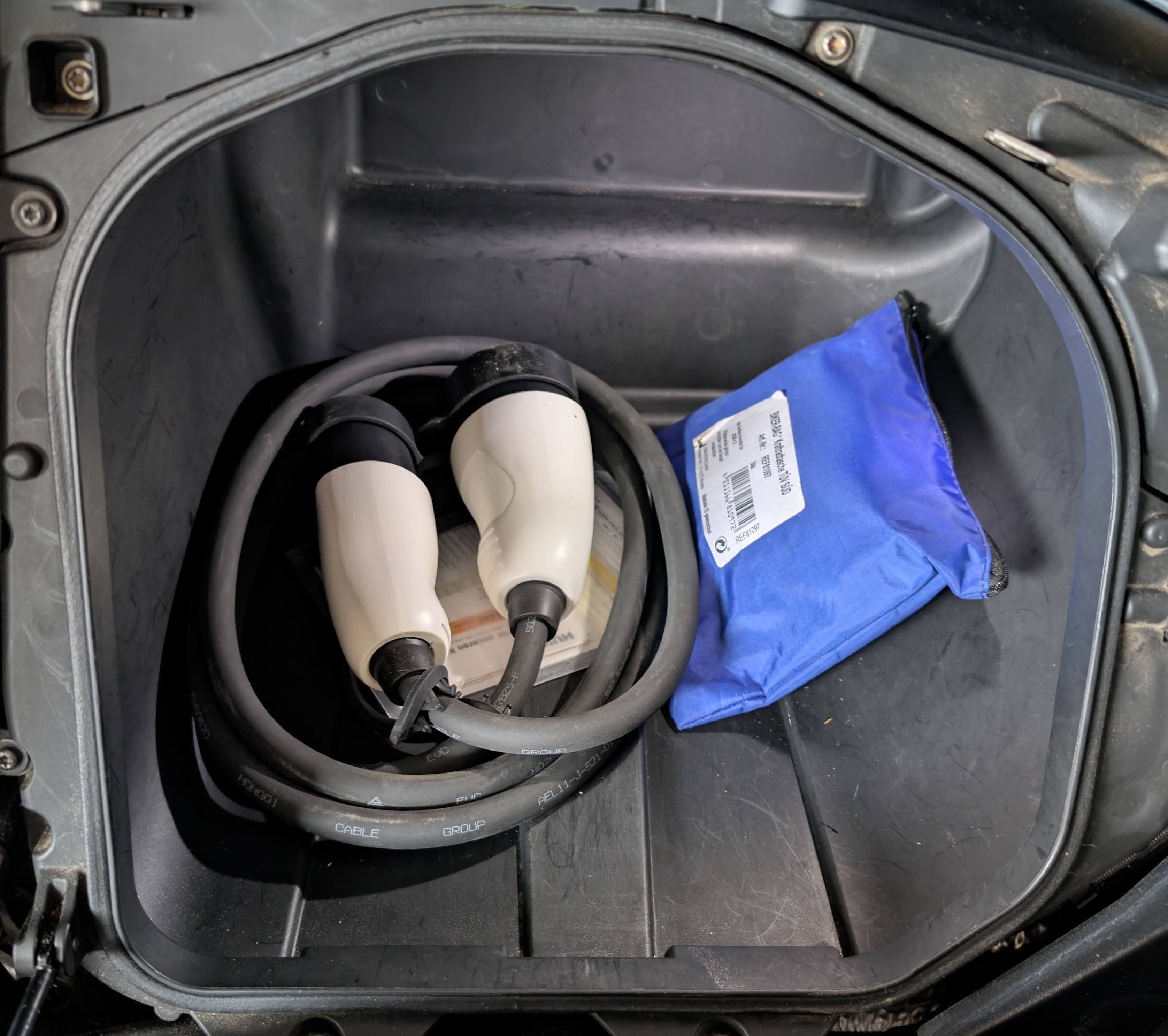 Hier das kompakte leichte neue 2,5m Steckerbike Kabel mit max 11 kW Ladeleistung (3phasig) im Vergleich zum ebenfalls bereits kompakten 2,5m Go-E 22kW Kabel. Das Weiße ist deutlich leichter und erheblich kleiner unterzubringen. Das Blaue verkaufe ich. Braucht's wer?