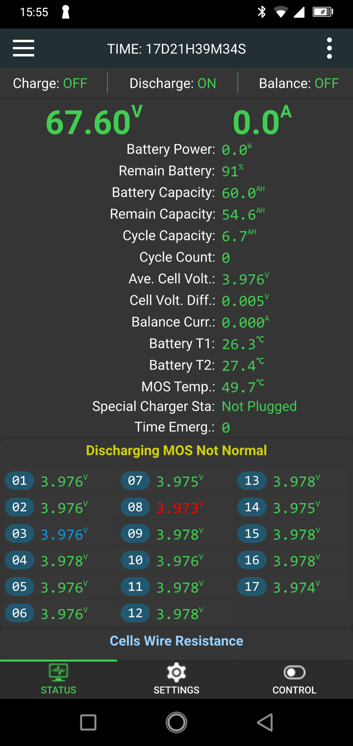 Beim zweiten Laden hatte ich dann in der JK-BMS-App eine Fehlermeldung "Discharge MOS not normal".