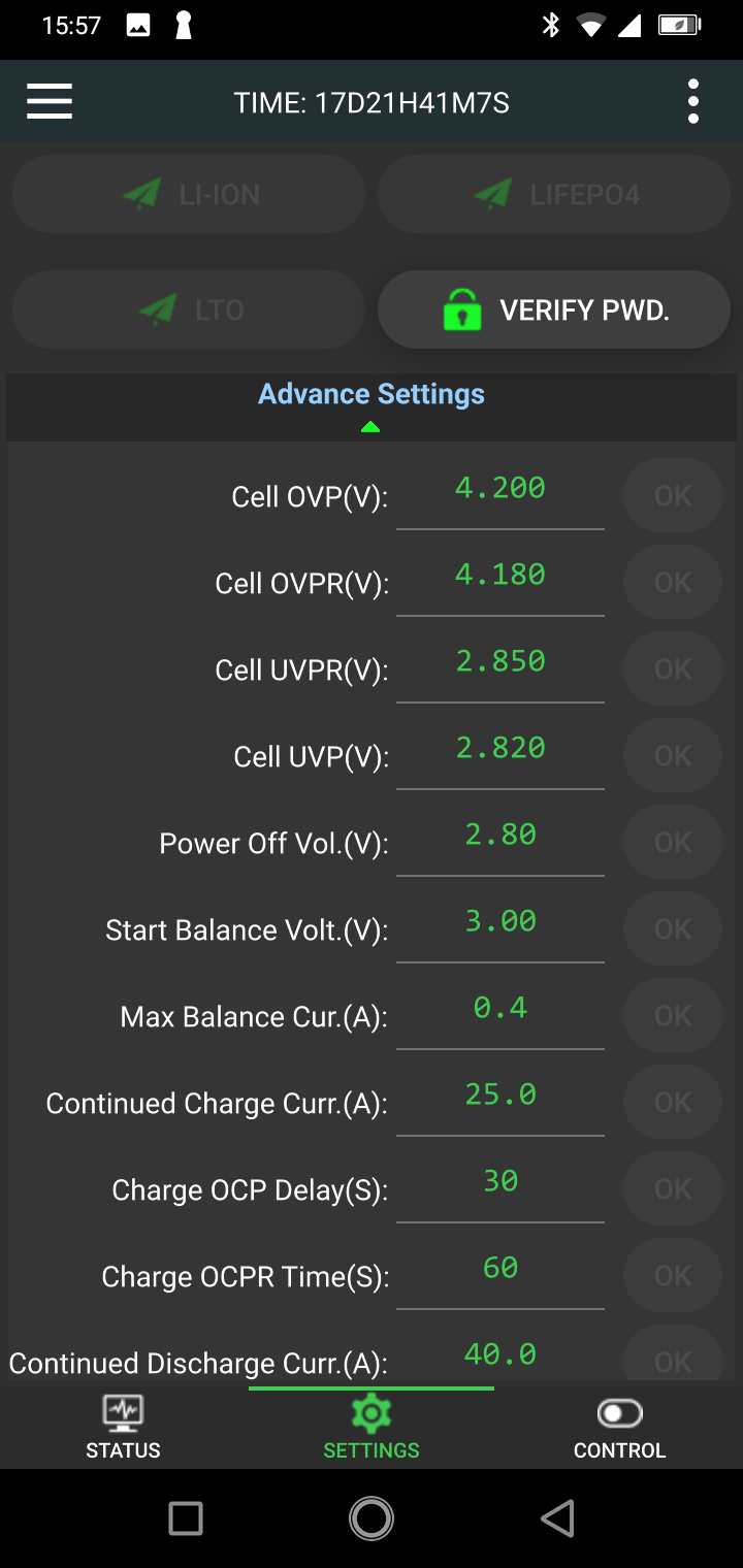 Hab grad an der APP Version gemerkt das es sich ja um das JK BMS handelt. Meine Erfahrungen und Parameter Einstellungen beruhen auf das JBD BMS.