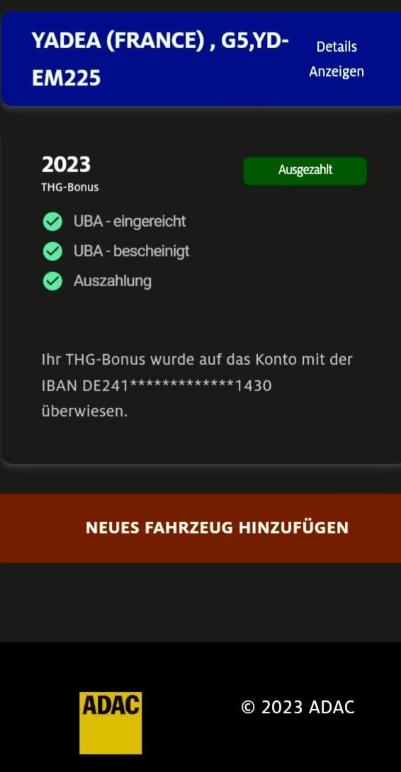 Da fehlt der Schrieb vom ADAC worin bestätigt wird das für 2023 , 320 EUR Prämie ausgezahlt wurde.