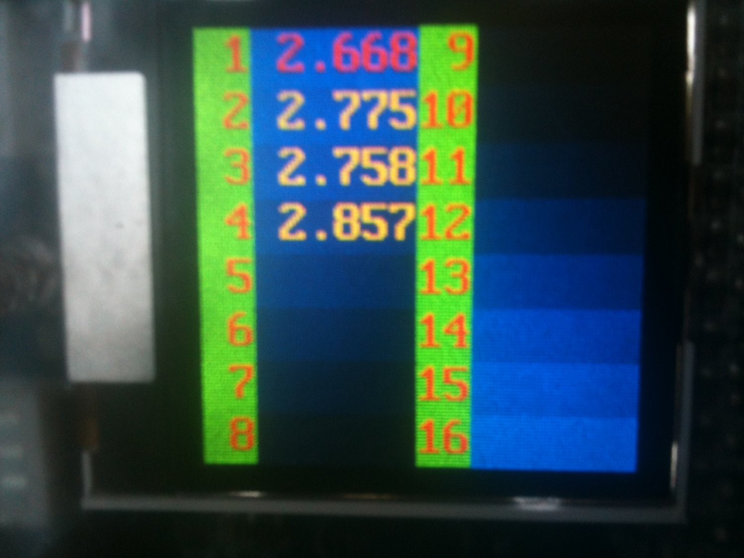 Das zweite Bild zeigt wieder die Ruhespannung der Einzelzellen nach 1h der Ladung. Auch hier sind diese Zellen