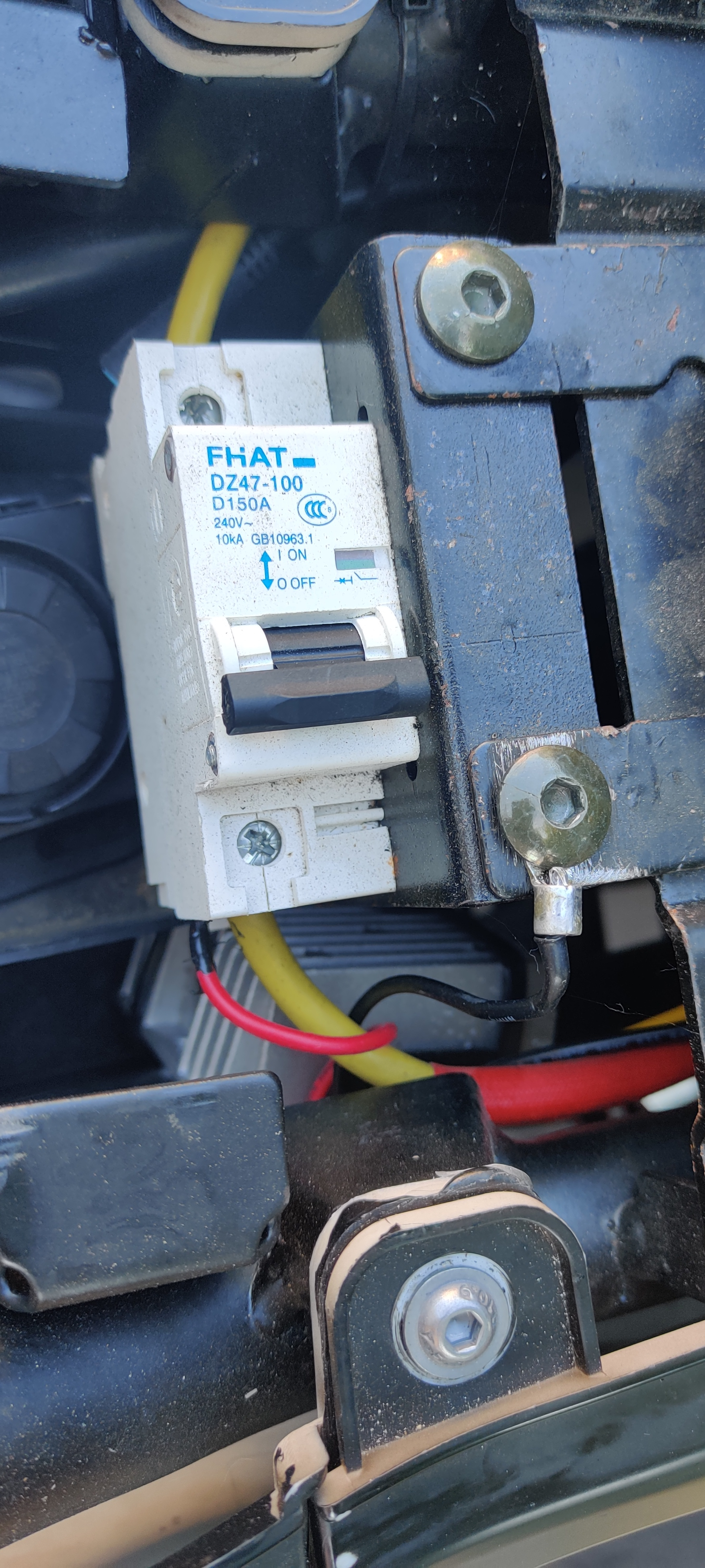 Auf den Bildern ist auch nochmal die dezente Brandstelle am Hauptschalter zu sehen. Ich schiebe das Ding heute erstmal wieder ins Haus und klemme die Batterie ab. Anschließend kommt der 12V Wandler raus und ich klemme wie vorgeschlagen alle Anbauteile ab. Neuer Hauptschalter rein und dann schalte ich stück für Stück wieder ein und prüfe an welcher Stelle der Hauptschalter wieder kommt. Vielleicht habe ich Glück und es ist "nur" der Hauptschalter abgefackelt weil der 12V Wandler falsch angeschlossen ist.