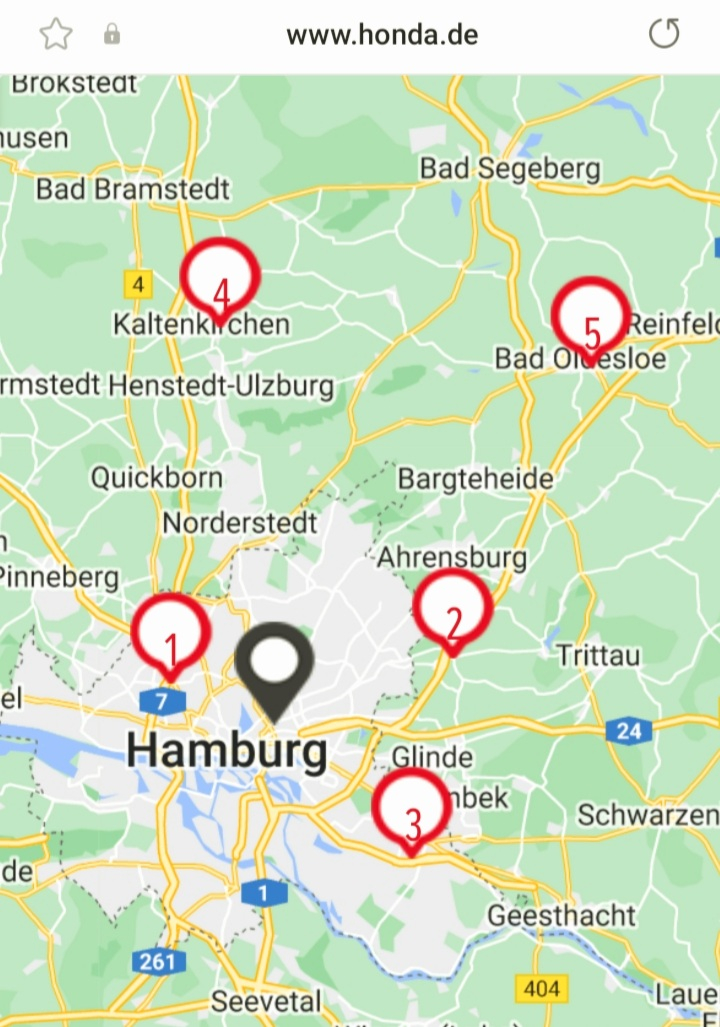 So üppig sind die Honda-Händler leider auch nicht mehr vertreten in Hamburg...