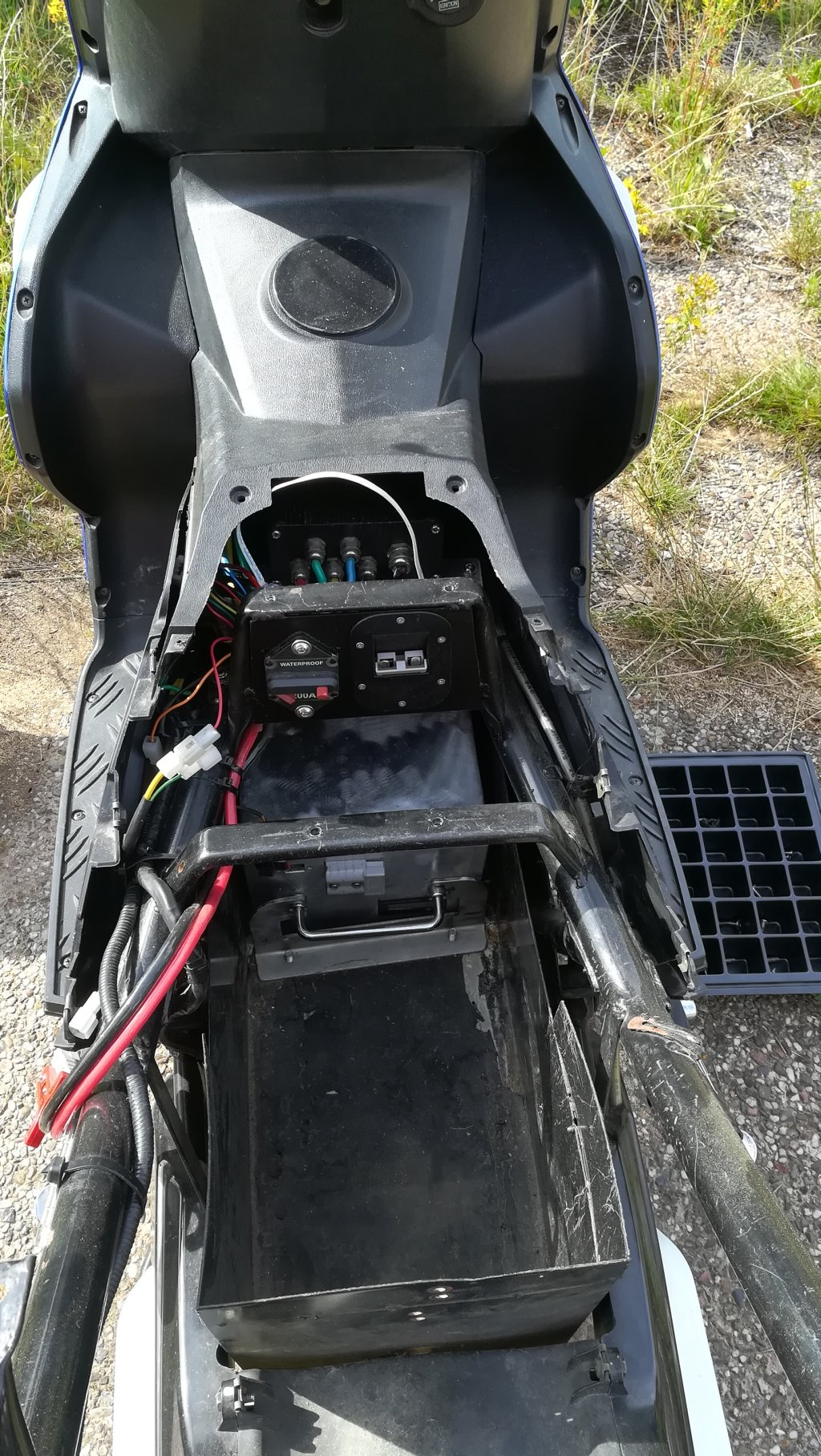Ich überlege auch noch, den Boden und ein Teil der 'vorderen Wand' von dem Fach unter dem Sitz großzügig auszuschneiden und einen Blechdeckel dafür zu machen, damit man dadurch im Bedarfsfall den Akku ganz ohne Verkleidungsdemontage rausnehmen kann. Hiesse natürlich, den 'Originalzustand' das raren Teils zu zerstören... Was meint ihr?