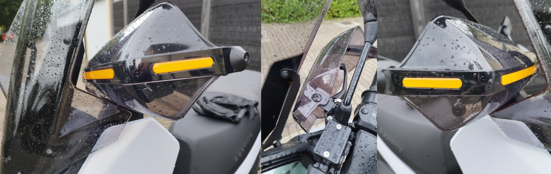 Die Fotos von den Protektoren habe ich im Beitrag darüber nachgereicht. Und da der Thread ja auch "Windschild" beinhaltet, hier nur noch meine Erfahrungen aus zwei richtig besch....n Regenfahrten inklusive Dunkelheit: Viel besser als befürchtet. Ich habe im Gegensatz zu anderen Berichten auf der Innenseite eigentlich keine nenneswerte Nässe (das war beim Piaggio-Schild schlimmer), auch die Tropfen stören optisch gefühlt weniger bzw. verlaufen schneller zu großen Tropfen statt einem feinen Tröpfchennebel. Blöderweise werden durch den Wind immer wieder kleine Wasserstrudel unterhalb des Schilds rechts und links "hochgeworfen" und beklecken den bei ausreichendem Fahrtwind eigentlich ganz gut geschützten Bereich um den Tacho und den Lenker zusätzlich.