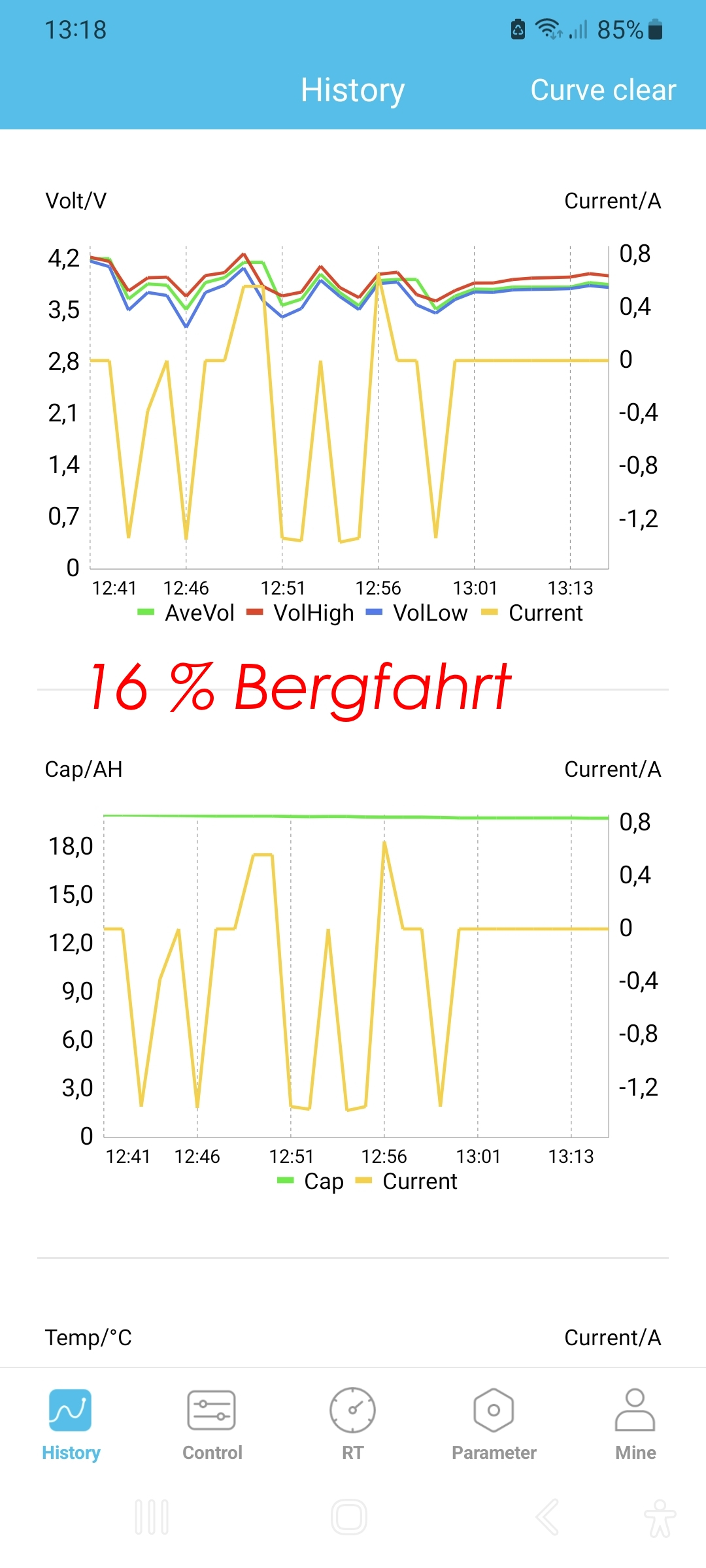 Ich hatte ihn zuletzt am Montag geladen (Screenshots waren von Mittwoch).Hast Du den jetzt voll geladen auf 71,4 Volt und schon getestet.
