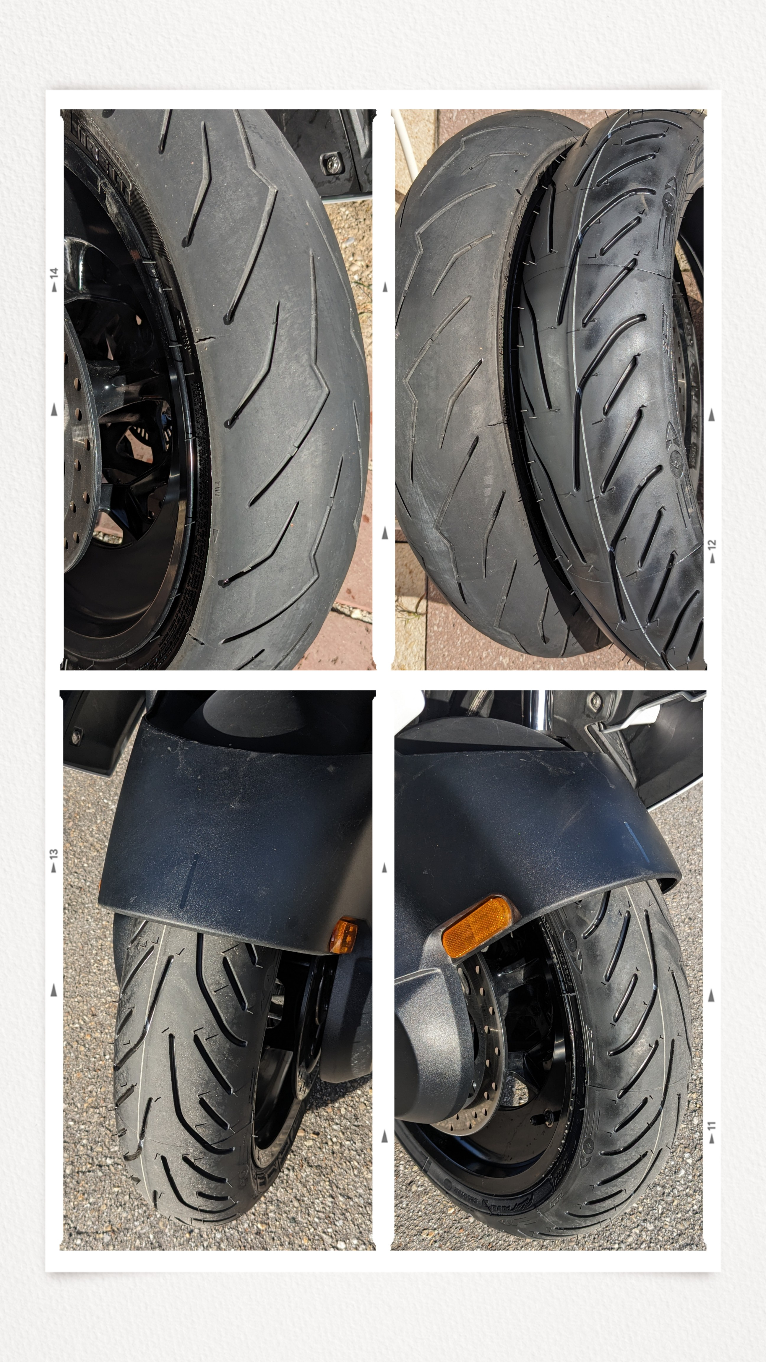 Montage bei Michelin wie schon beim Road 4 viel einfacher als beim Pirelli. Erster Rolltest scheint zu zeigen, dass das träge Lenkverhalten bei langsamem Fahren oder im Stand des Road4 beim neuen Pilot Power 3 so nicht nachvollziehbar ist, also klar besser.