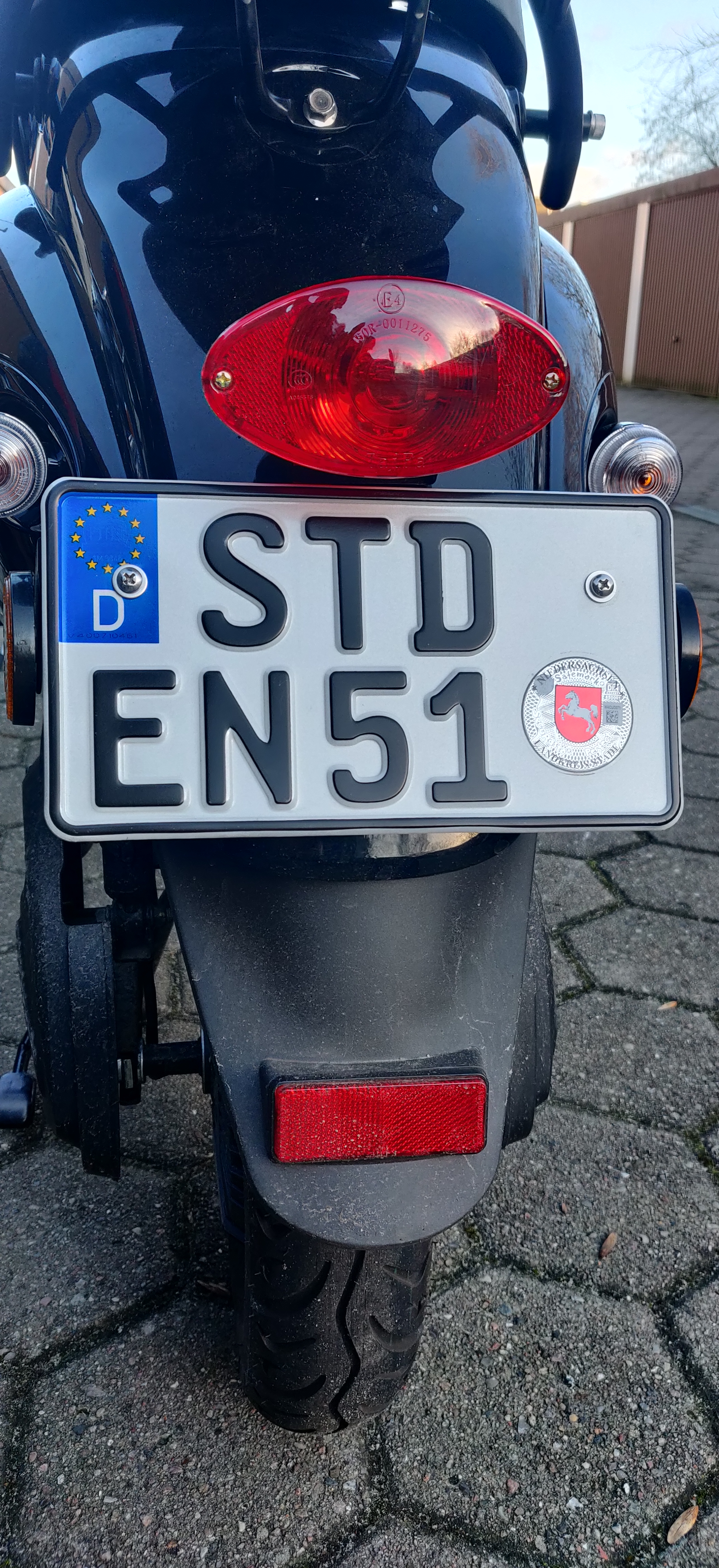 Du lässt das 45er Fahrzeug freiwillig als Motorrad zu (wenn die im Amt mitspielen). Aktuelle Motorradkennzeichen werden im Algemeinen akzeptiert, wenn die Nummernschildbeleuchtung das ausleuchten kann.