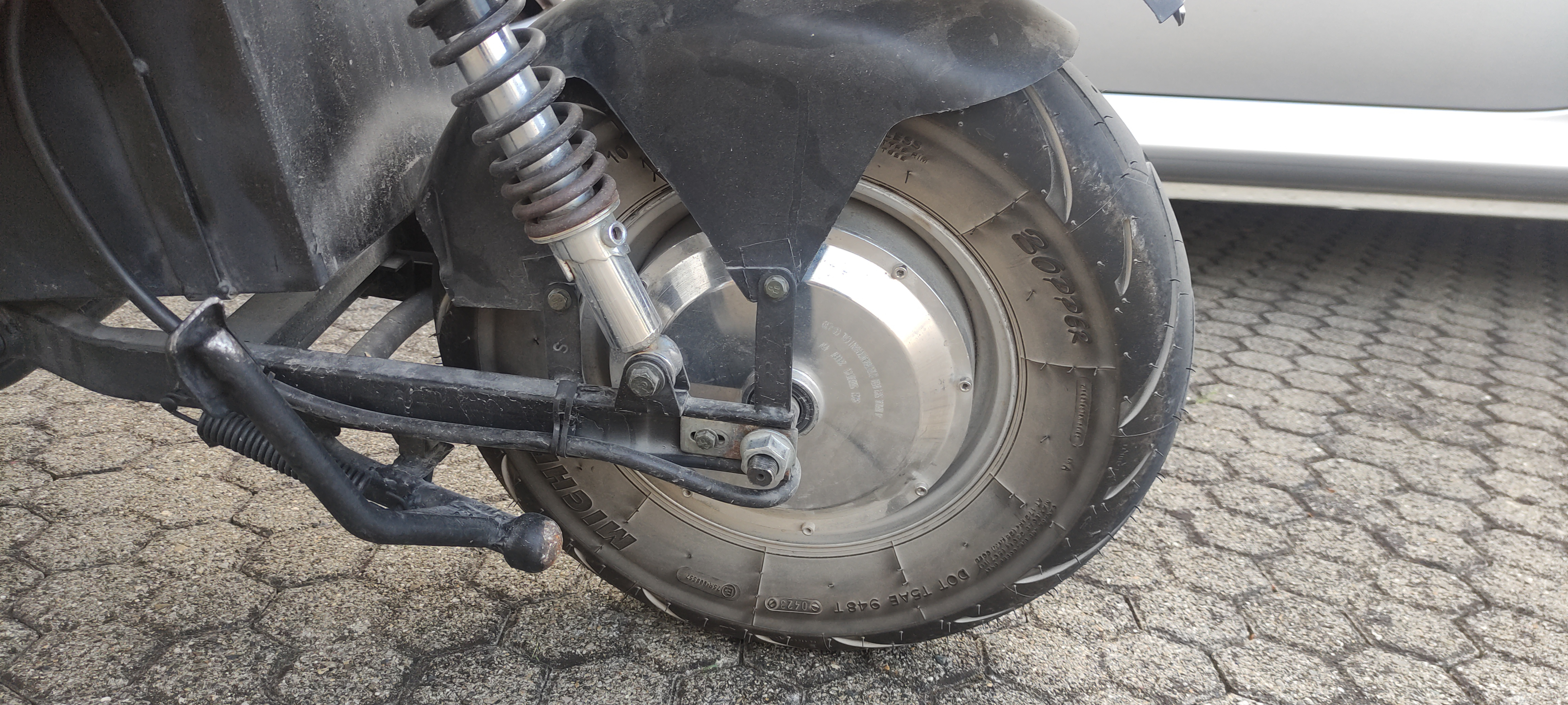 Ihr dürft nicht außer Acht lassen, dass ich mit dem orginalen 3.5-10er Reifen einen Abrollumfang von 1,3m hatte. Jetzt liege ich mit dem 120/90er bei 1,4m. Die Motordrehzahl ist deutlich niedriger bei 45km/h also zuvor. Bei den 108km/h brannte das BMS durch- der Motor fühte sich noch sauber an, ging aber ab 90km/h schon eher in ein Turbinensingen über.