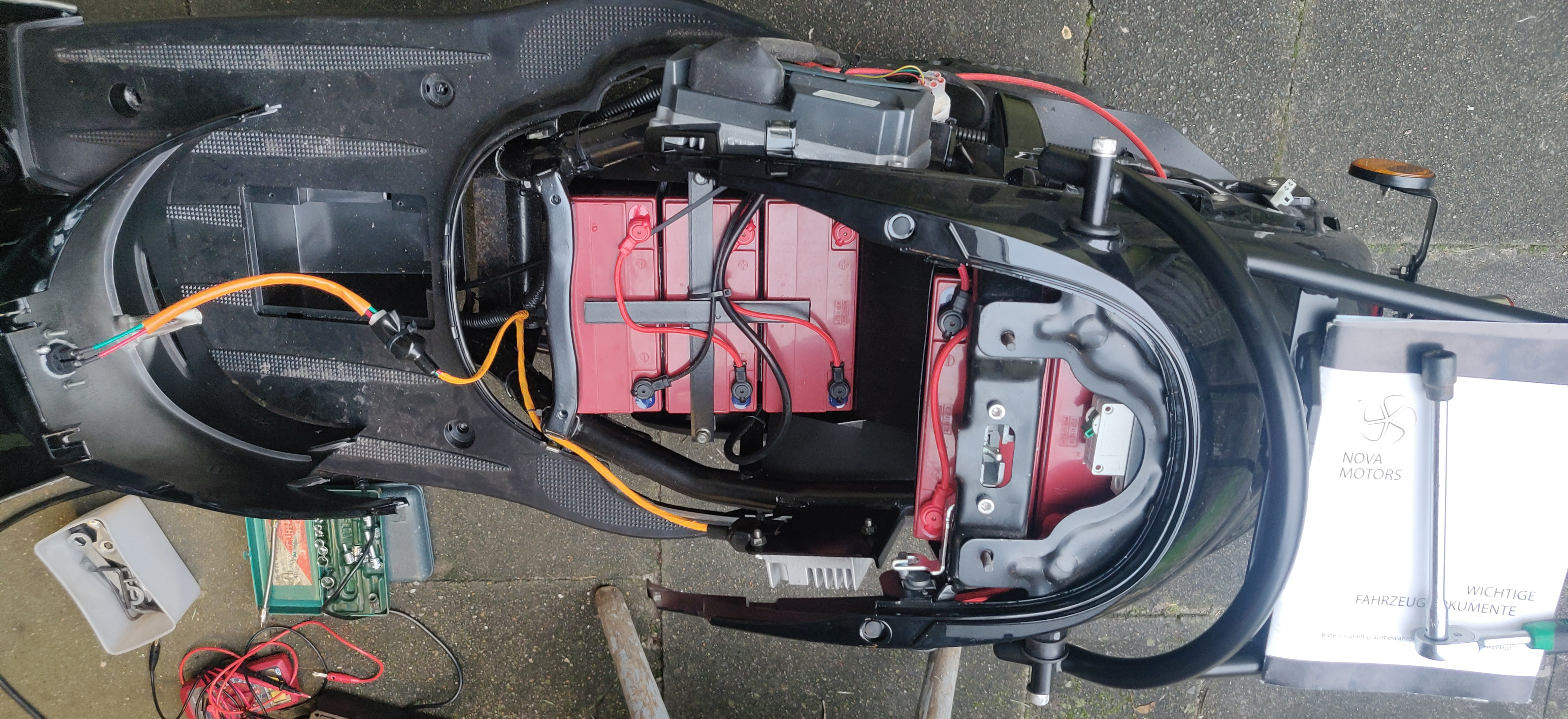 Bei dem Burschen gibt es eine Glassicherung rechts unter der Verkleidung beim Controller und den großen Automat unter der Sitzbank, hi ten in der Mitte.