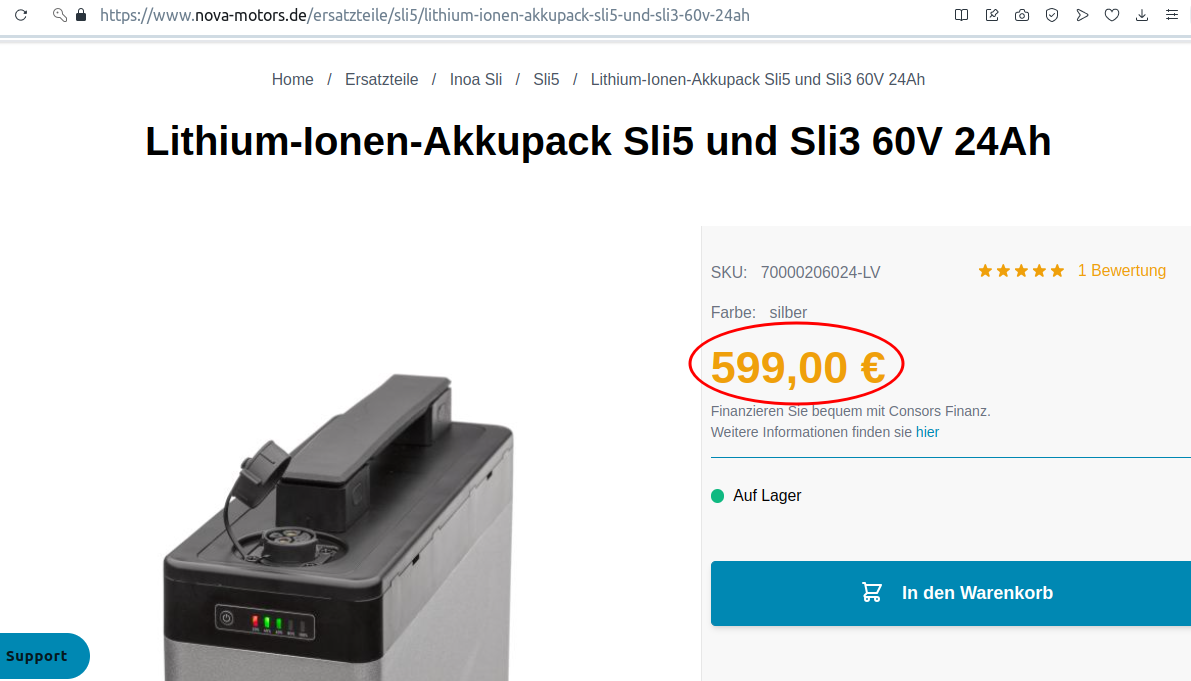 Aber wo sollte da der Vorteil gegenüber einem originalen Akku von Nova-Motors liegen?