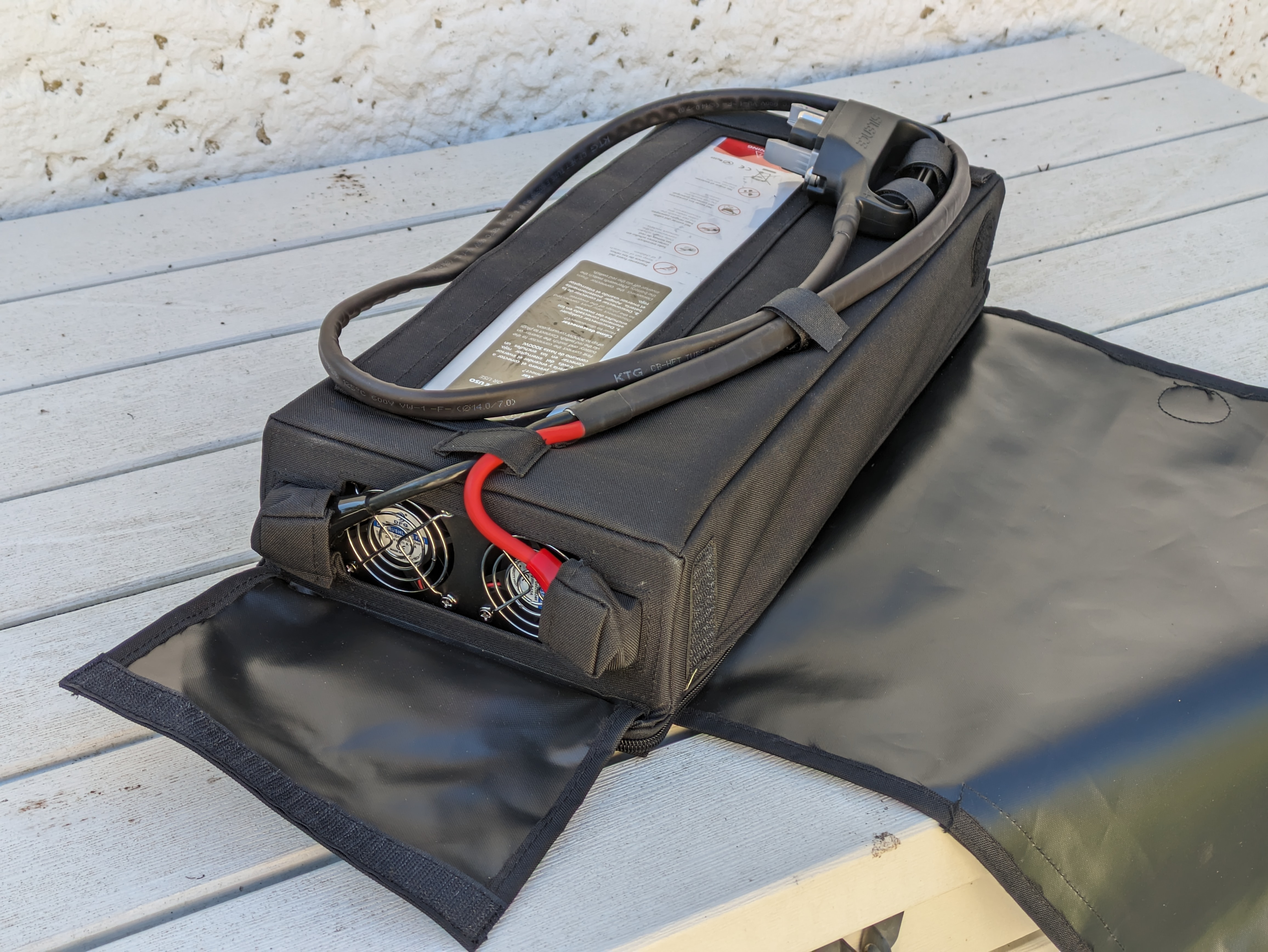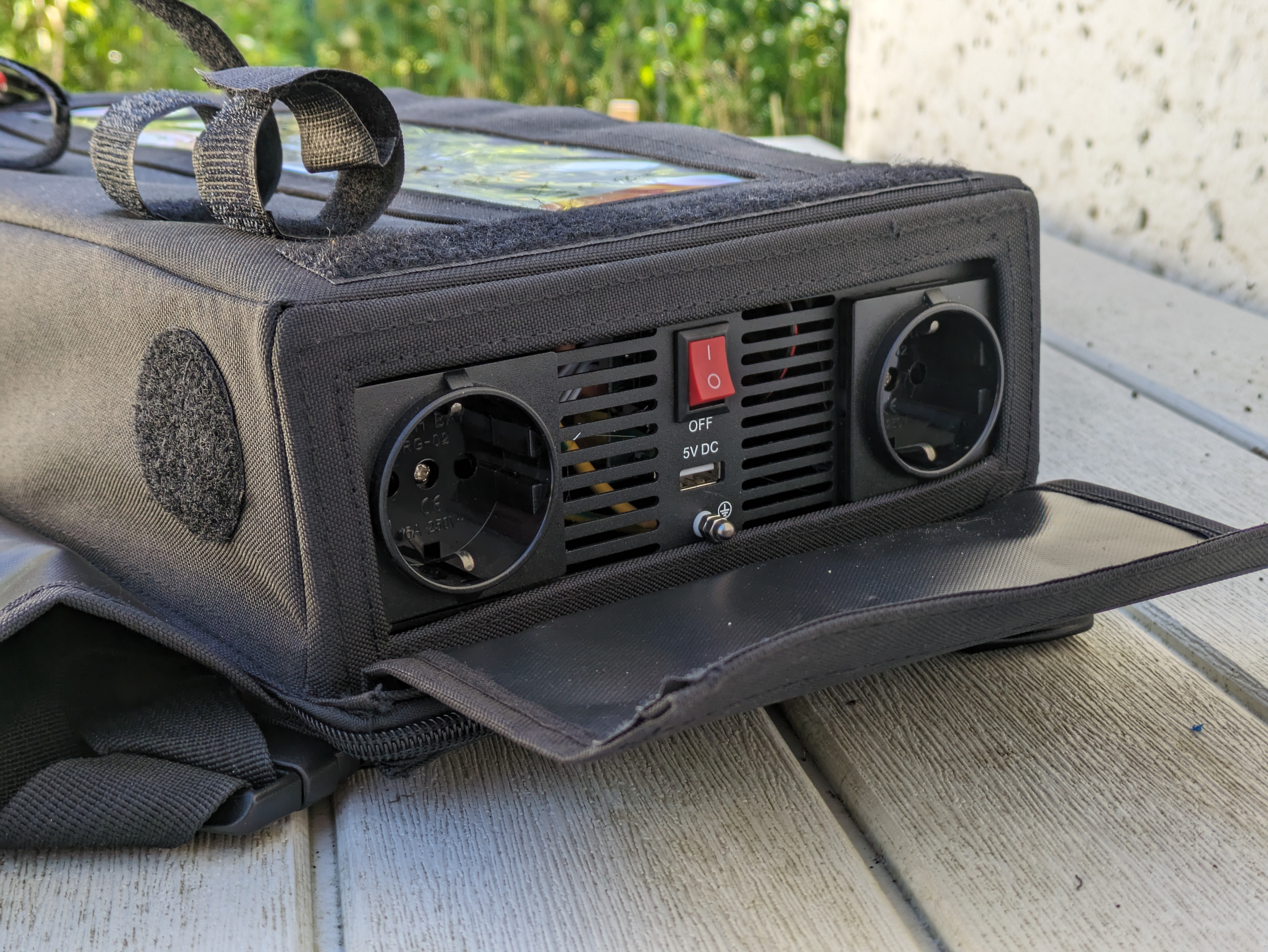 Als "der Besucher" steuere ich mal ein paar Fotos bei. Mobile Stromer hatte mir den Inverter nach etwas Hin-und-Her im August geliefert.