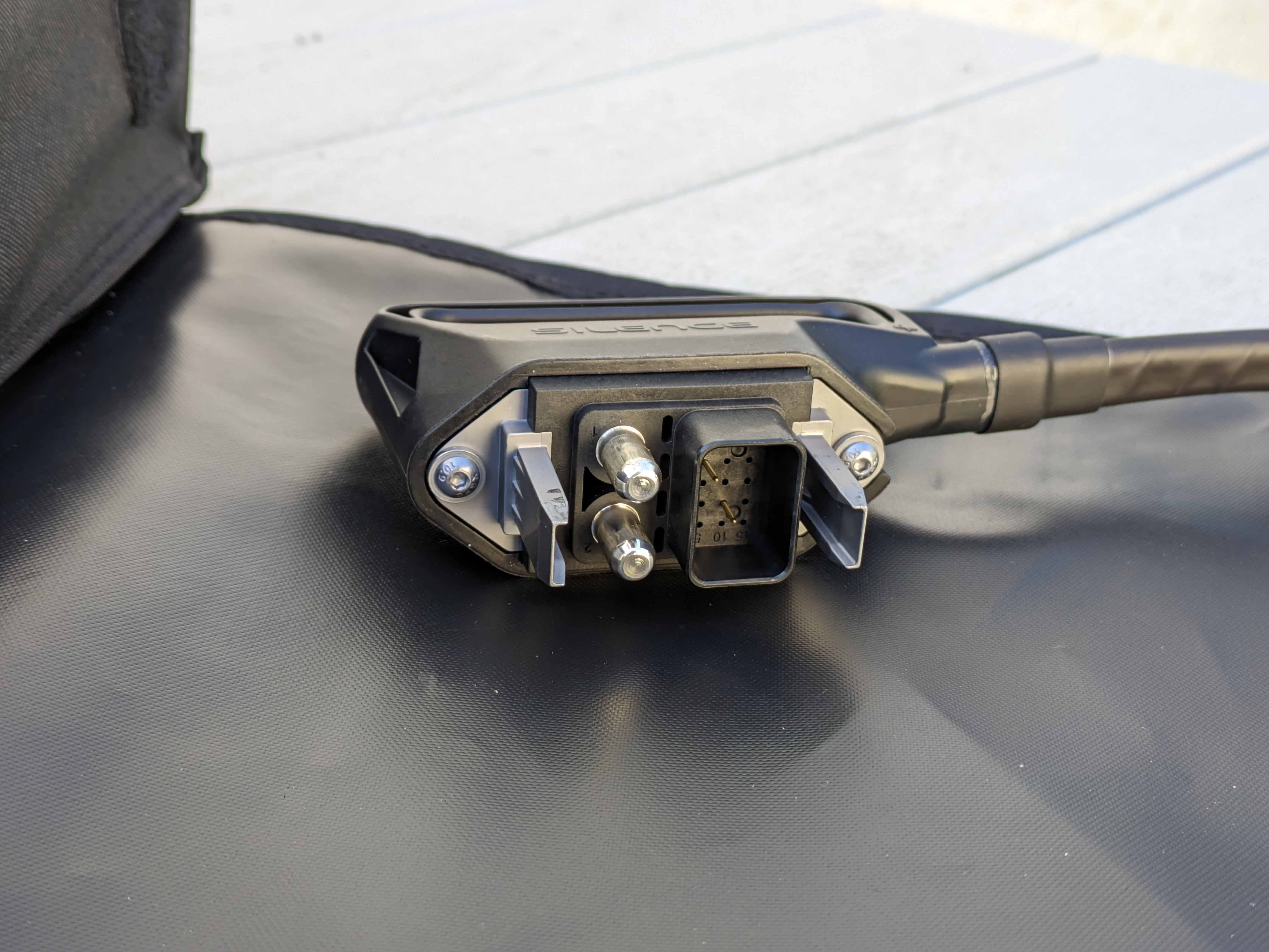 - Im Multiconnector gibt es genau zwei kleine Pins, die wir alle schon von Norberts Stecker kennen. Das Hochstromrelais im Akku schaltet sofort ein, sobald man den Stecker in den Akku steckt. Definitiv keine Kommunikation zwischen den Geräten, wie auch.