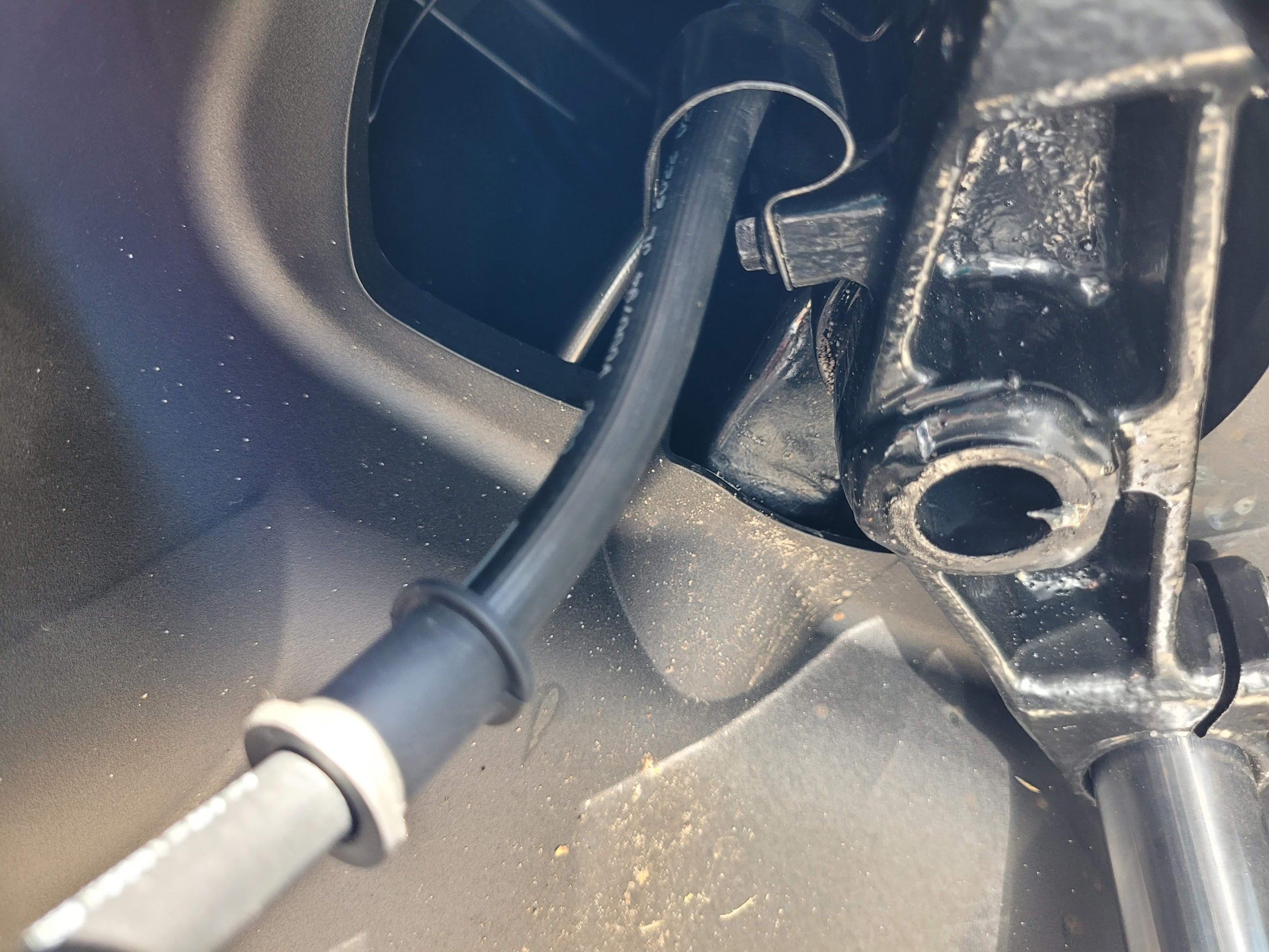 3: An der Vorderradgabel haben die Mechaniker die seltsame Angewohnheit, die Gummibuchse und Klemme, die die Bremsleitung führt, nicht richtig zu sichern. Ich habe das auch auf dem Foto anderer Besitzer gesehen. .