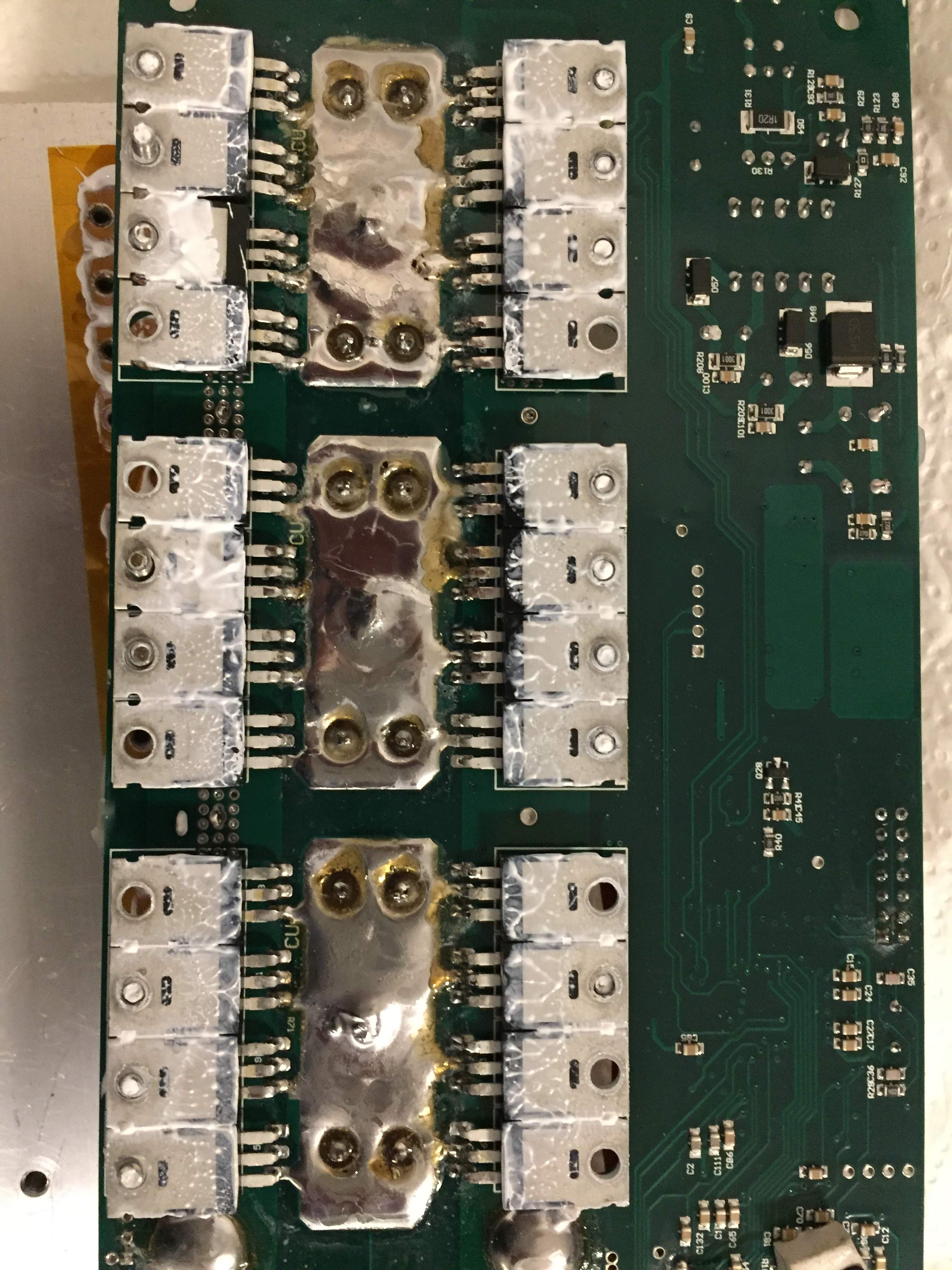 Ich werde bei meinem/Dominiks Controller die FETs nachlöten. Die scheinen heil zu sein. Danach will ich den Controller reinigen.