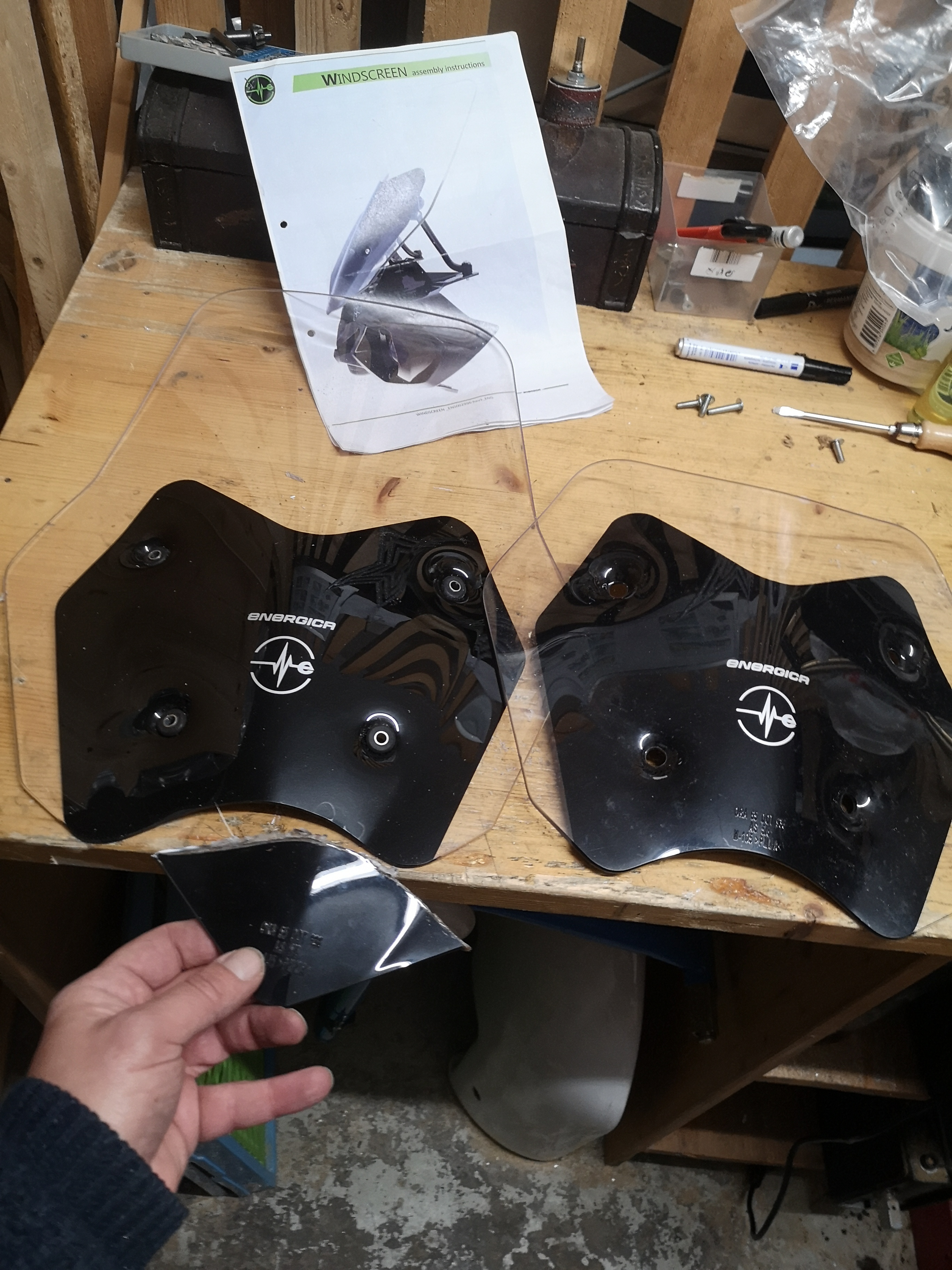 Mir war die original Eva Scheibe einen tick zu klein. Ab einer bestimmten Geschwindigkeit musst dein Körper dann doch gegen den Wind kämpfen. Das kann bei längeren Touren schon anstrengend sein. Da ich dieses Jahr einmal um Island fahre habe ich die Lösung nun umgesetzt. Eine alte Ribelle Scheibe hat die identischen Bohrungen wie die SS9 Scheibe aber eine andere Halterung. Den unteren Zipfel habe ich entfernt, die Bohrung noch vergrössert damit die Gummis reinpassen. Das sitzt nun alles perfekt.. und man merkt den Unterschied. Schaut auch gut aus.