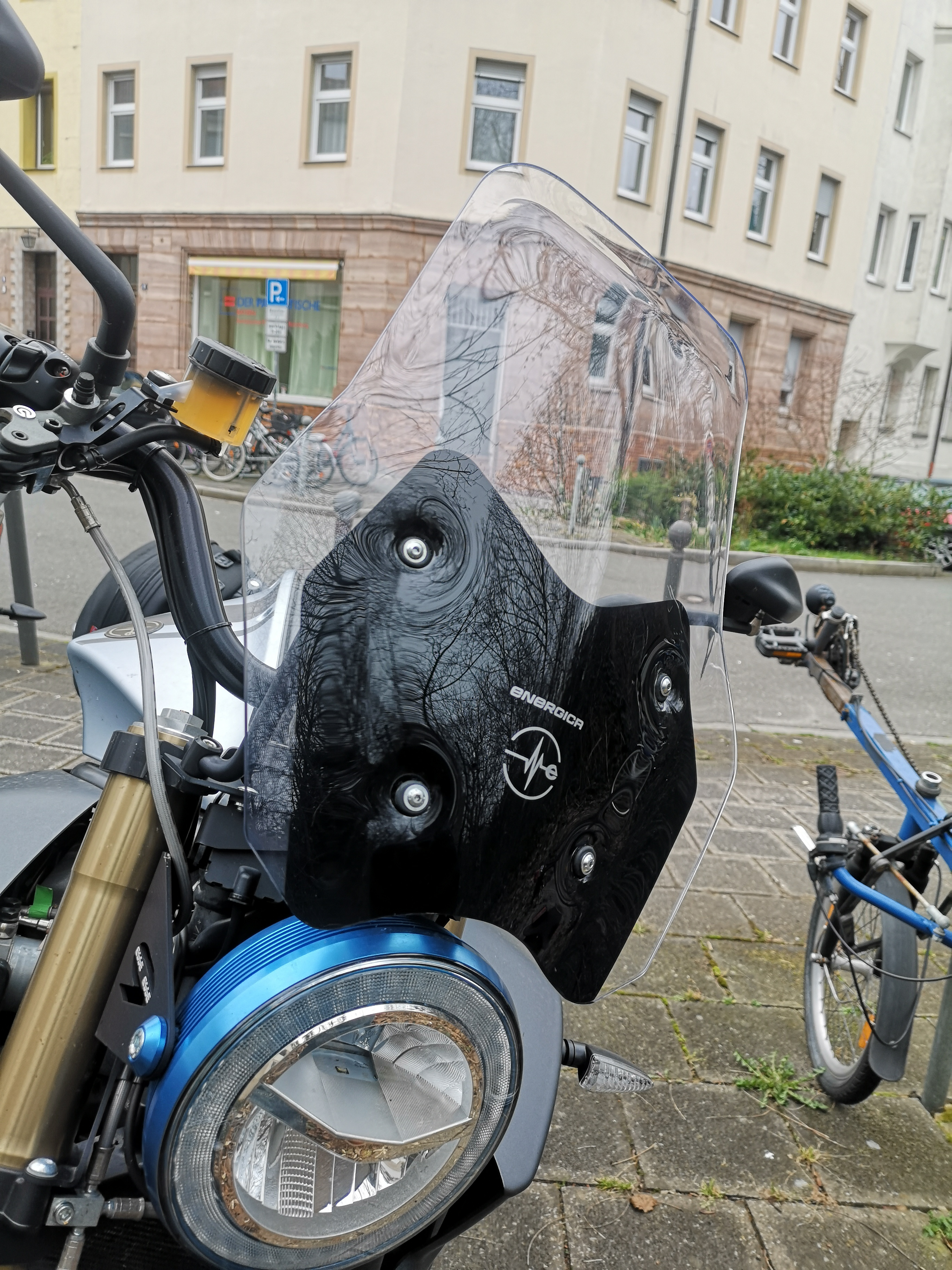 Alternative: Ein PUIG Up&Down (Typ 2193W). Das ist in Deutschland nicht für die Verwendung an den Energicas zugelassen, passt aber mechanisch gut. Optisch nicht der Brüller und ähnlich den originalen Schildern - aber größer und damit etwas effektiver, und es ist mehr als das originale Ribelle-Schild in der Höhe verstellbar! Auch hier: Mir sind keine Verbrauchs-Vergleichsdaten bekannt. Meins habe ich übrigens noch, gekauft und nie verbaut…