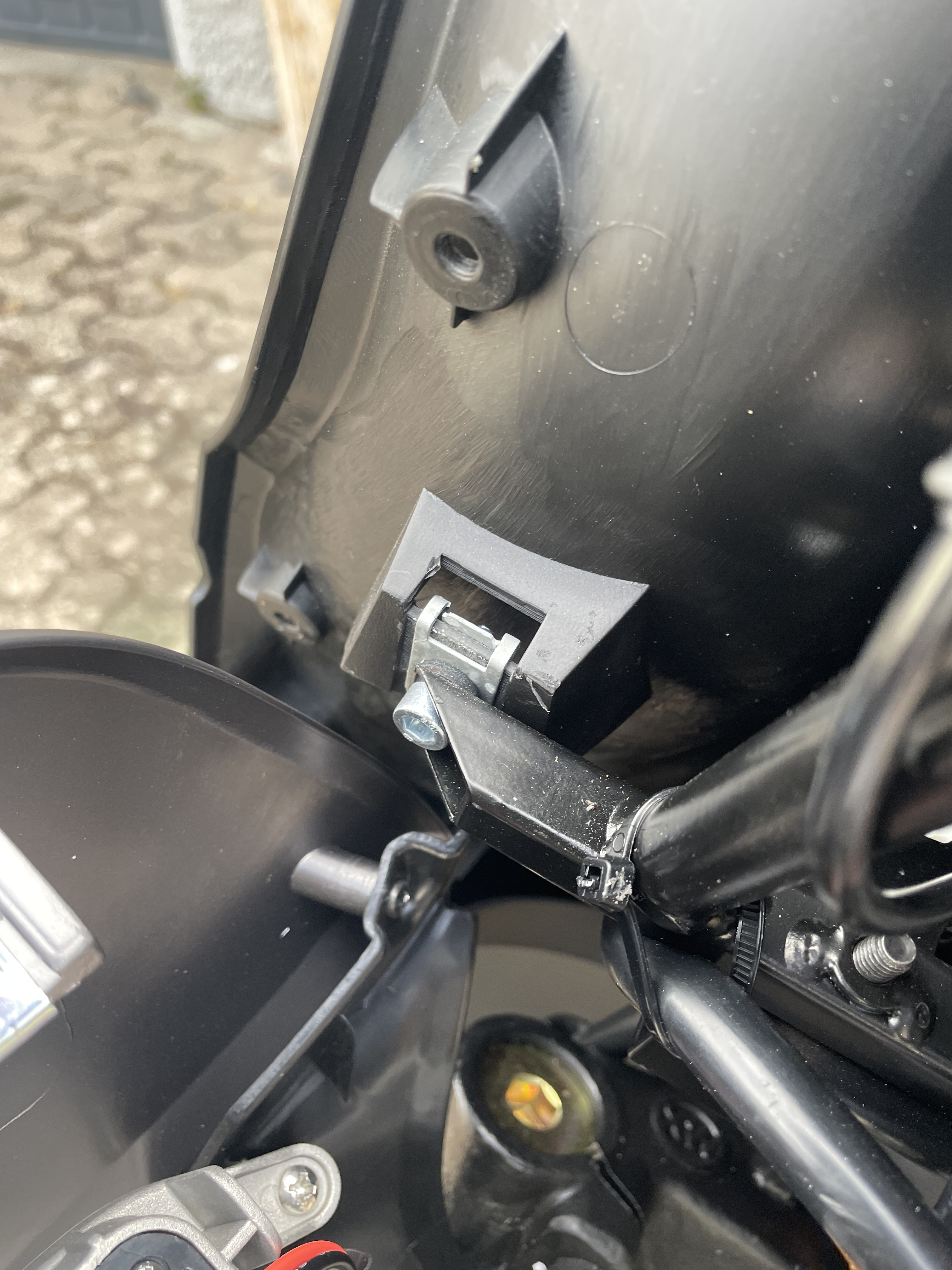 Als ich neulich meinen Mo offen hatte wegen Piepserberuhigung und Nachrüstung von Elektronik im Lenker, ist mir exakt diese fehlende Schraube (auf der gleichen Seite) aufgefallen. Gleichzeitig ist bei mir das Spaltmaß zwischen den Plastikteilen herunter bis zum Fußbrett auf dieser Seite (links) auffallend hoch und jetzt noch größer, seit ich die Frontschütze mit Schraube und Scheiben in ähnlichem Platzbedarf wie mit der Kralle befestigt habe. Bei Dir auch?