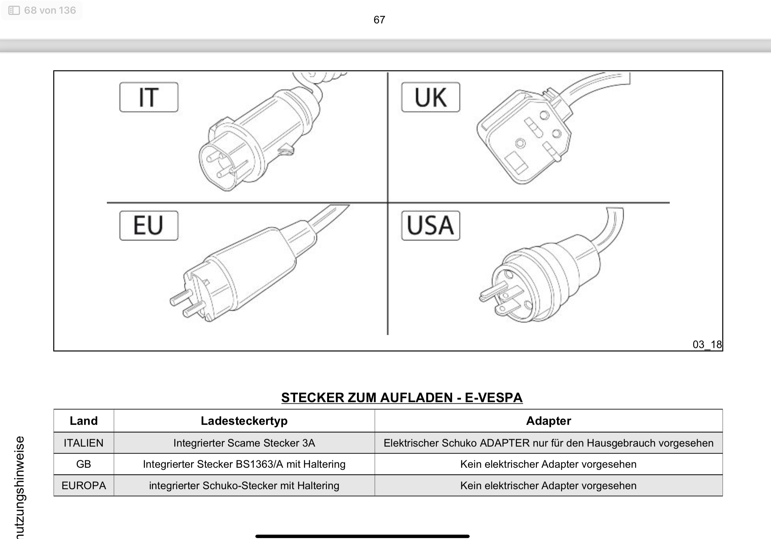 Dann finde ich sehr komisch das die Vespa so einen komischen Ladestecker hat, vermutlich eine italienische Variante. Es ist ein blau-ovaler Ladestecker, kein Schuko-Stecker, siehe Link: