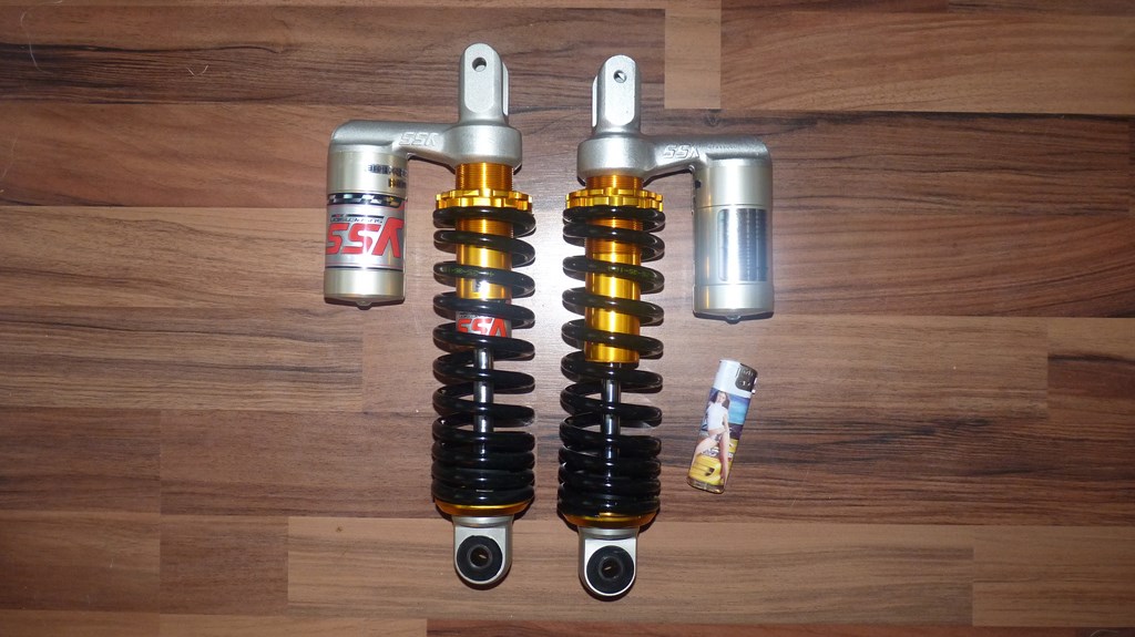 Federbein ist eines von einem Quad, braucht man auch bei 65kg Gewicht. Die Federgabel ist eine Highend Gabel aus dem Downhill Bereich.