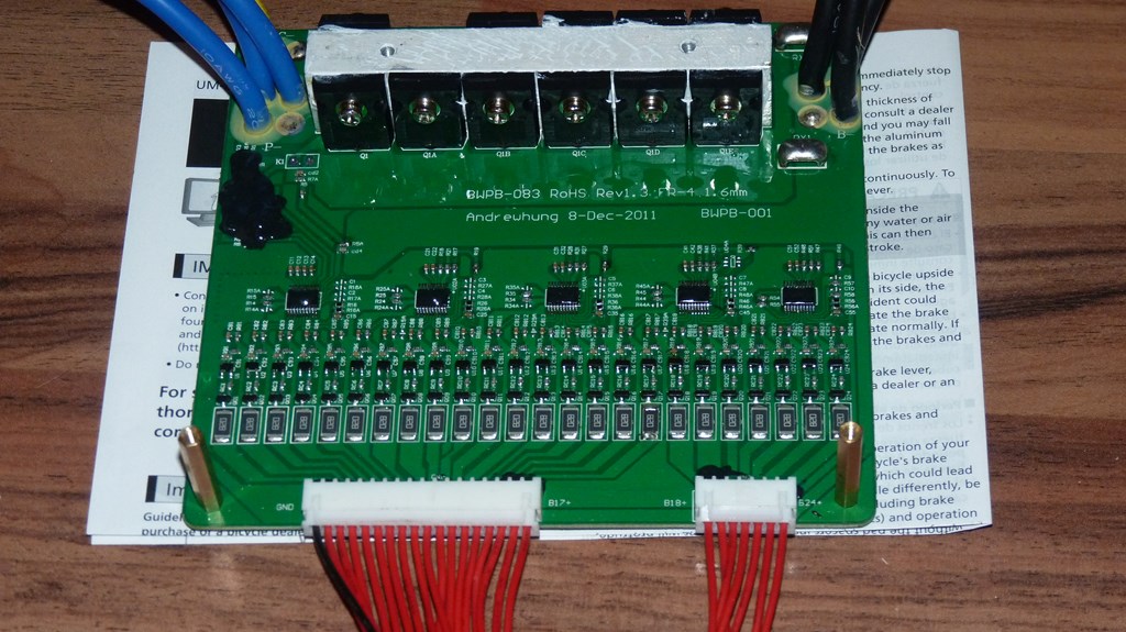 BMS: für eine Ladeschlussspannung von 100,4V (4,2V je Zelle). Leistung 100A dauerhaft und 200A peak
