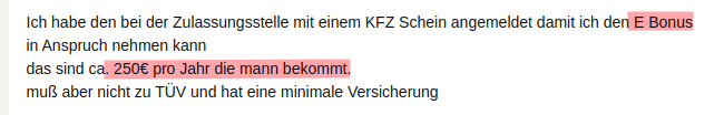 Als legitimes Argument, um den Preis zu drücken, könntest du jenseits der eventuell geschädigten Akkus noch anführen, dass er die THG-Prämie in der Beschreibung noch anpreist, obwohl es die künftig gar nicht mehr gibt: