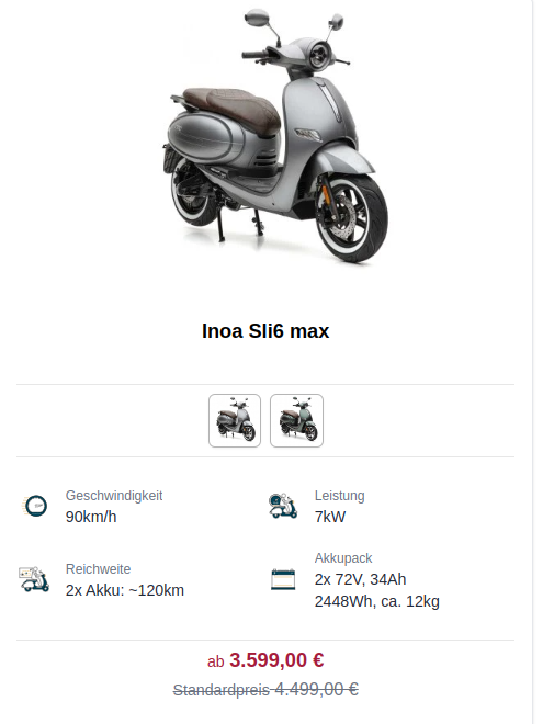 Roller: Inoa S5 Li Doppelakku ab 02/22 + NIU N-GT Ext.Range ab 08/24