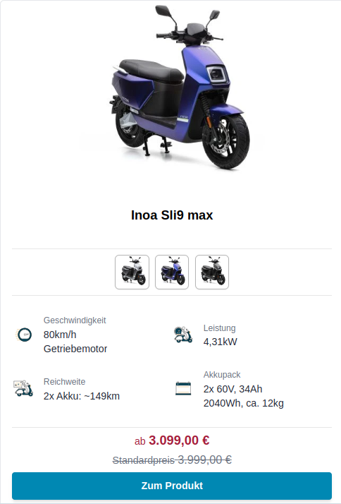 - Roller: Inoa S5 Li Doppelakku ab 02/22 + NIU N-GT Ext.Range ab 08/24