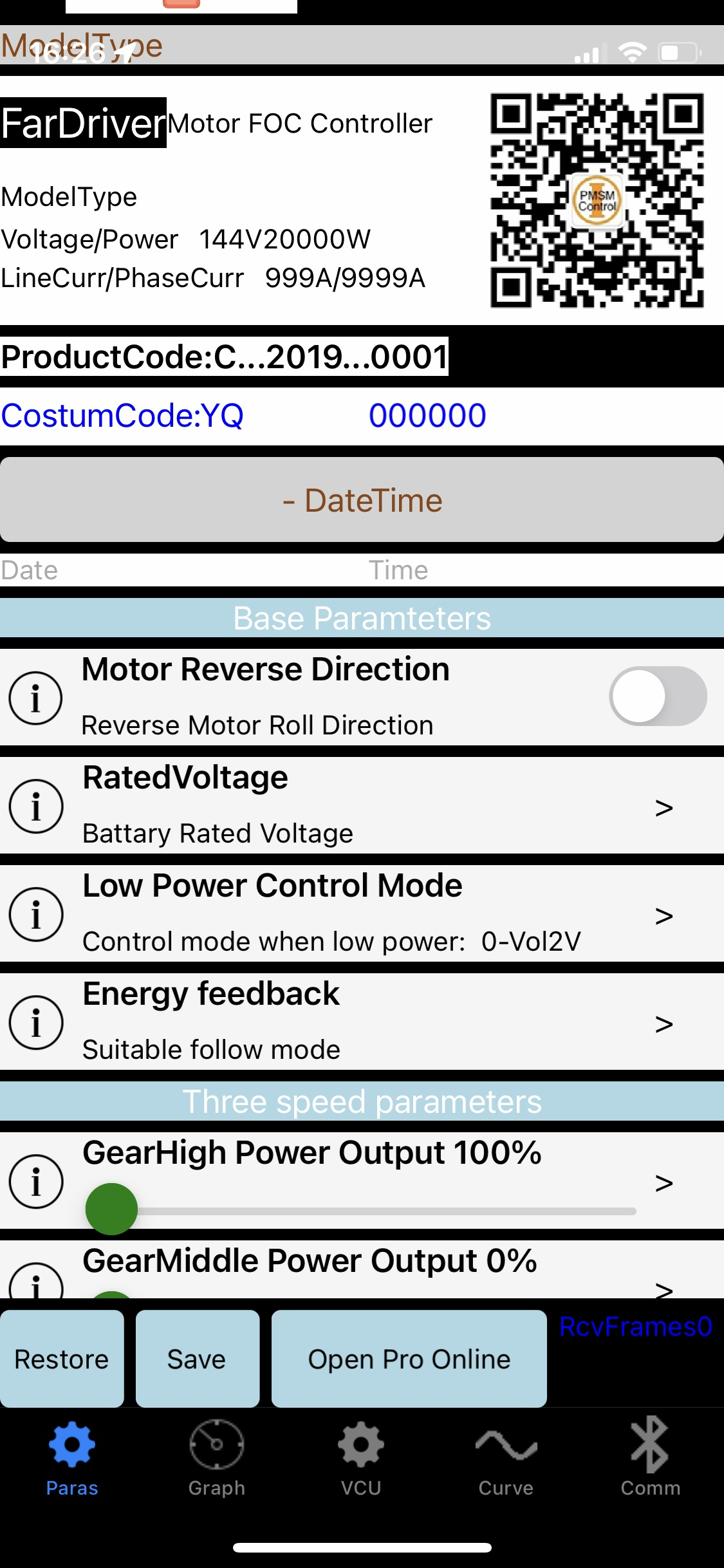 nachdem ich ja nun Ende November einen neuen Bluetooth Controller erhalten habe, hat sich die IOS Fardriver Software mehrfach geändert. Derzeit ist v2.3.6 aktuell, ich hatte aber noch keinen Erfolg mich mit dem Controller zu verbinden. In der obersten Ebene kann man sich ein Passwort erstellen lassen. Nachdem man dieses eingibt, wird beim "Open Pro" Button nun ein "Open Pro Online" angezeigt. Nach wie vor kann ich mich mit dem Dongle verbinden, eine Verbindung zum Controller ist nicht möglich. Vielleicht hat ja schon jemand inzwischen etwas Neues herausgefunden?