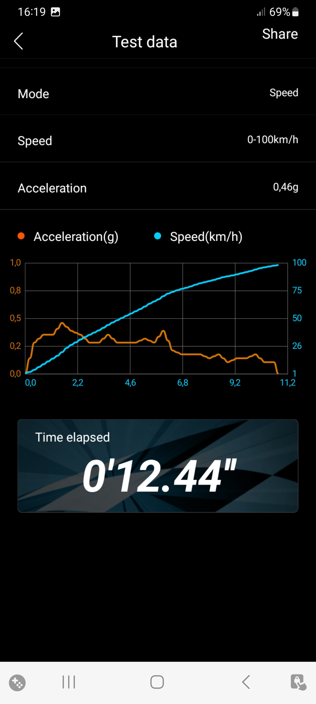 0,2 Sekunden schneller als im Mai, aber auch nur weil ich obenrum nun erst bei über 90km/h den Phasestrom drossle.