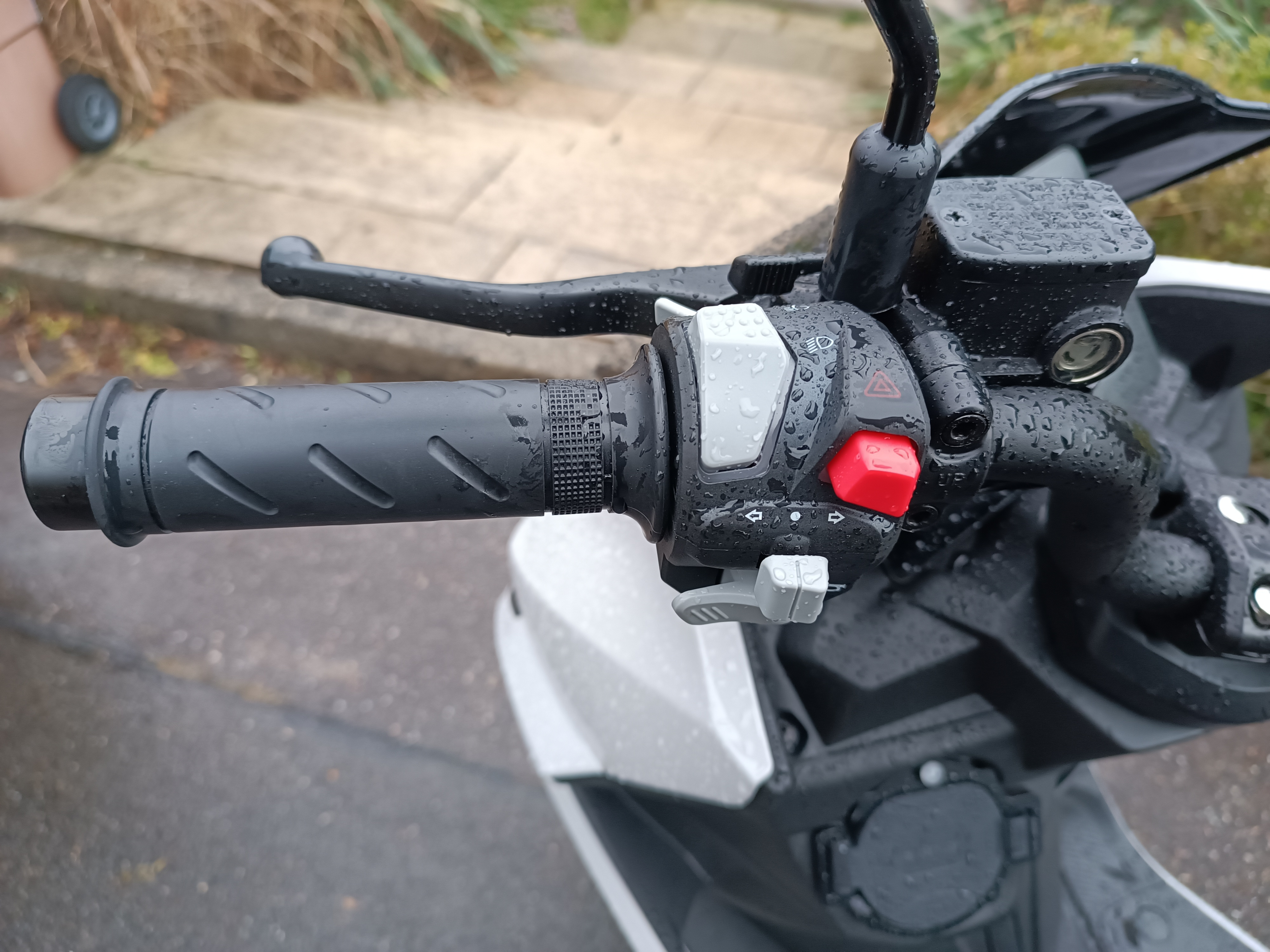 Lichthupe - ja, die gibt's auch. Ist wie ein Pistolenabzug am linken Griff und das ist auch gut so. Denke die kann man auch gut einsetzen 😉