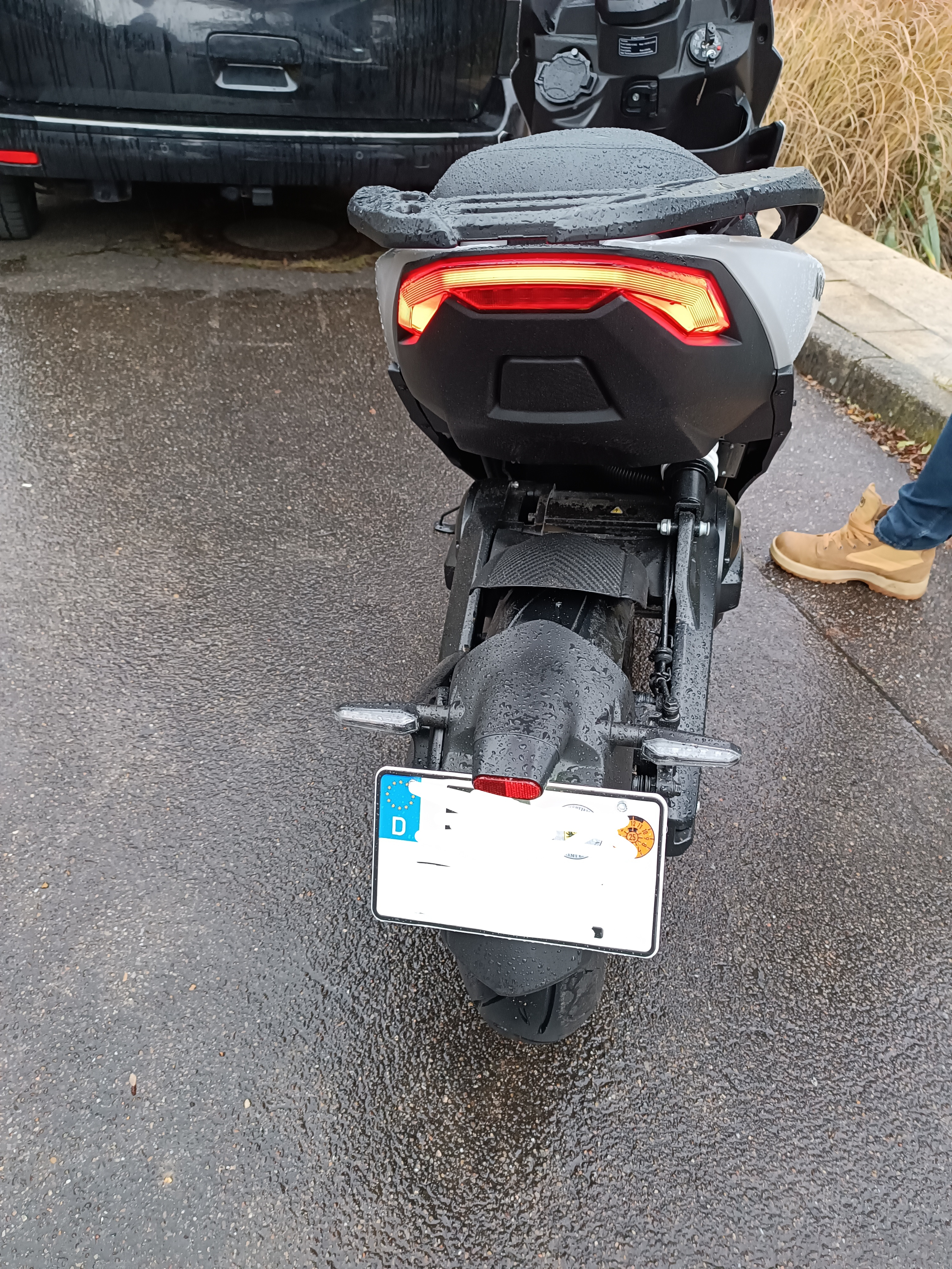 Der Anzug ist ungefähr vergleichbar mit meinem Auto (150 PS TDI mit 350 Nm Drehmoment). Das Leistungsgewicht ist aber nochmal deutlich zugunsten des Rollers.