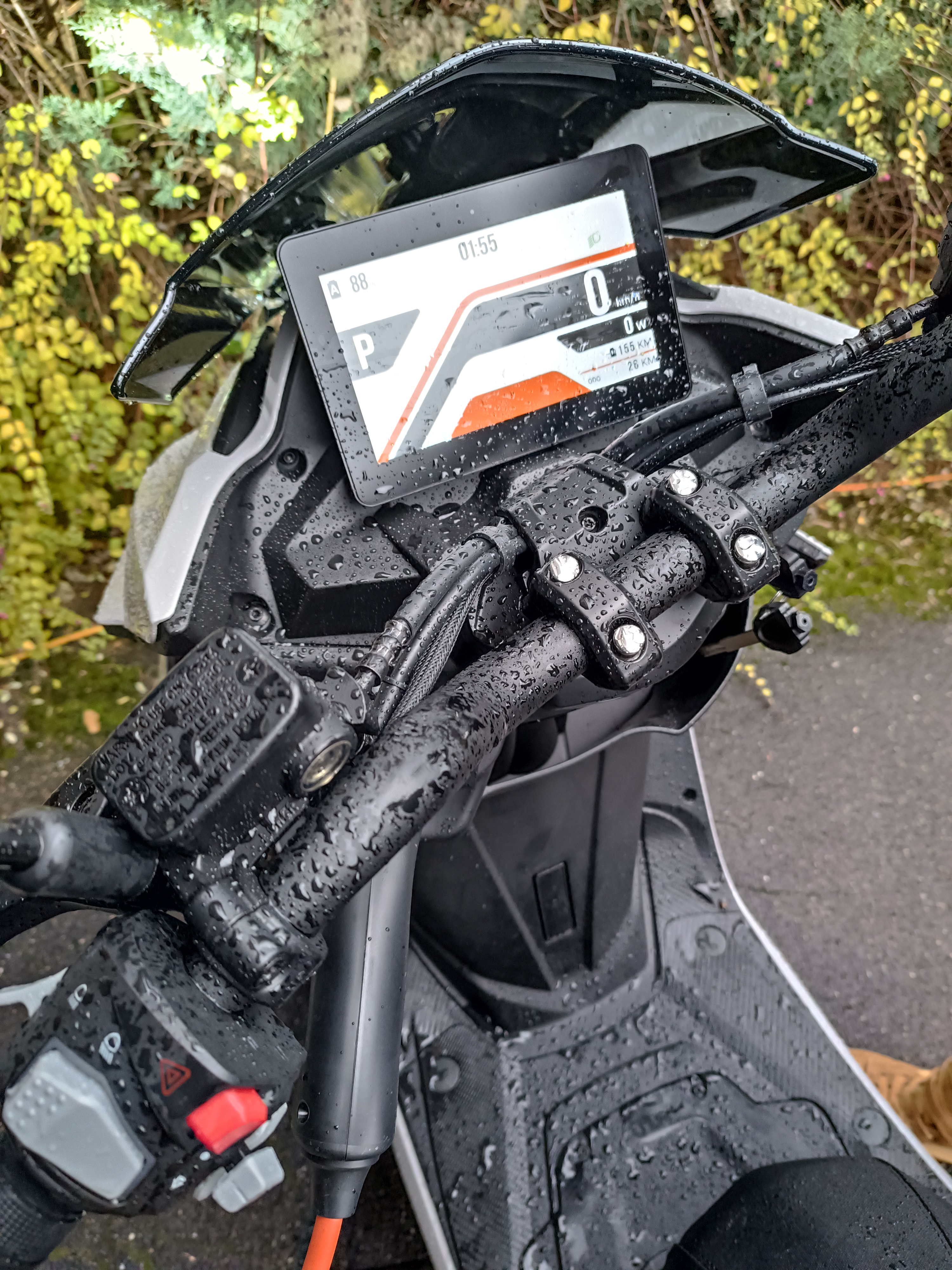 Im Fahrmodus "S" (Spass-Modus) zieht der Roller noch deutlich besser. Die Anzeige hat da 15.800 Watt angezeigt und die Höchstgeschwindigkeit hab ich nicht ausprobiert, aber bei 110 km/h war ich schon.