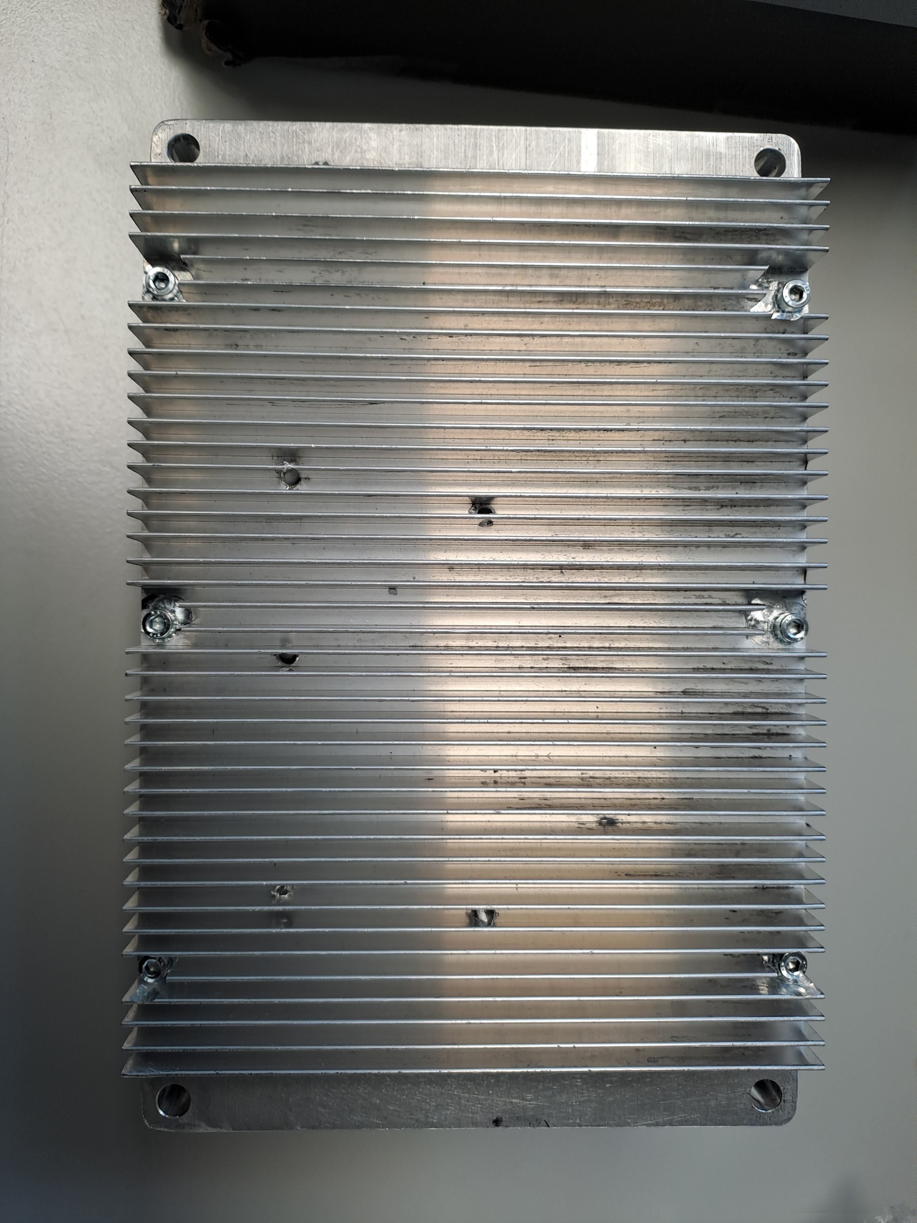 Nach 1 Stunde bei 18A Spitzentemperatur Kühlkörper 45Grad , Unterseite 59,5Grad 20A wird wohl im Sommer auf Dauer nicht funktionieren.
