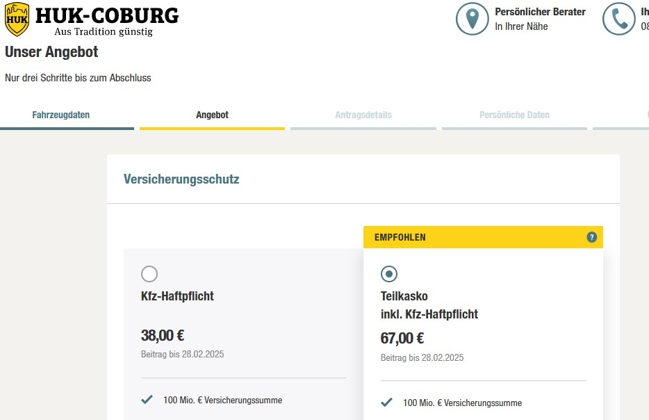 vor allem, die zusätzliche kasko ist interessant incl. glasschaden