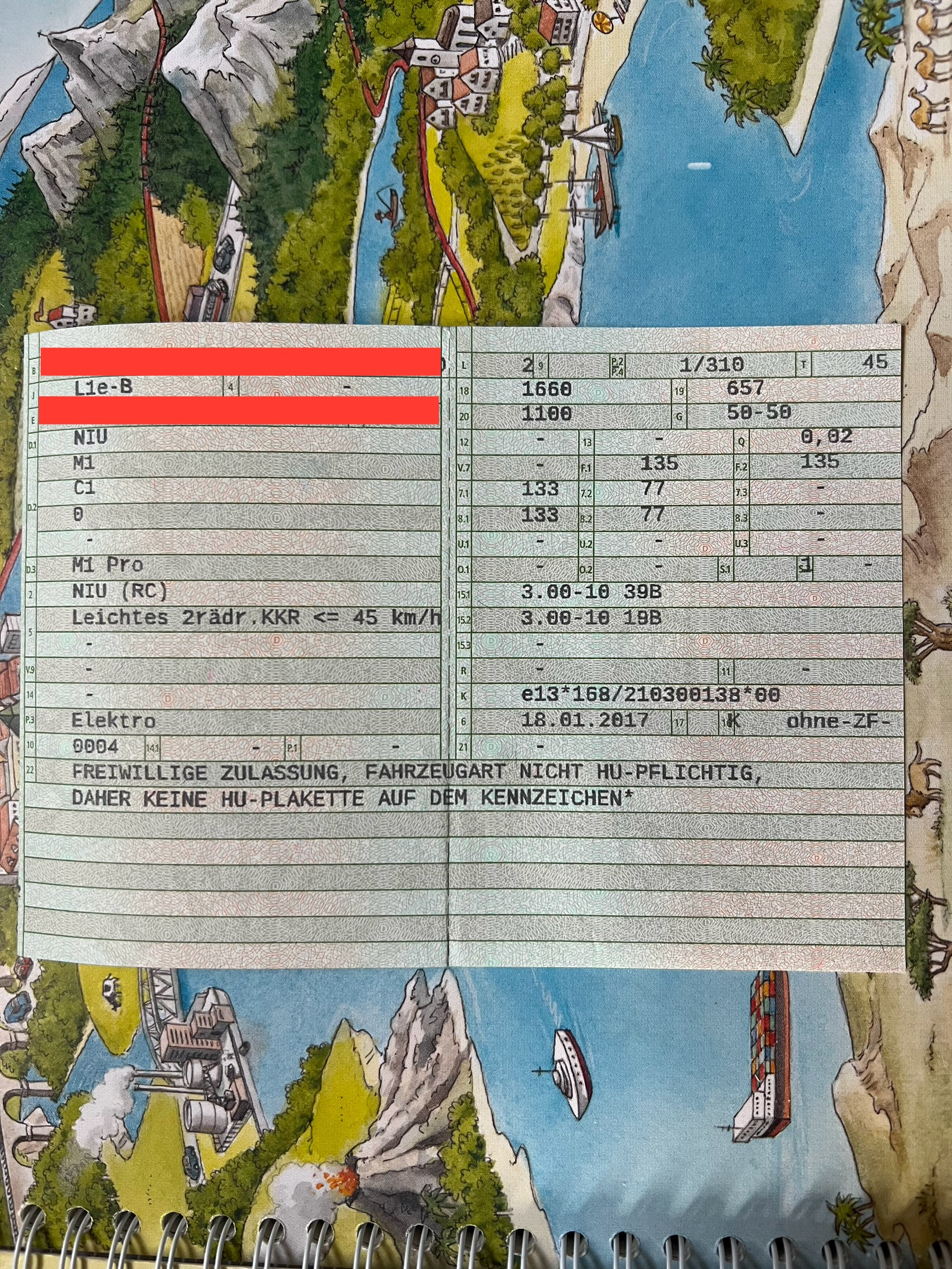 Ich hab ne halbe Stunde mit denen diskutiert weil die wollten das ich den Roller (Neufahrzeug) erst zum TÜV bringe, mir dort die Möglichkeit der Anbringung eines großen Kennzeichens und eine „ausreichende Beleuchtung“ desselbigen attestieren lasse.