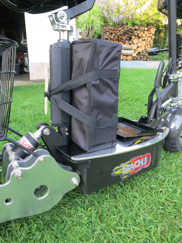 für den Transport des Reserveakkus habe ich mir aus 1mm Blech eine Halterung gebogen.