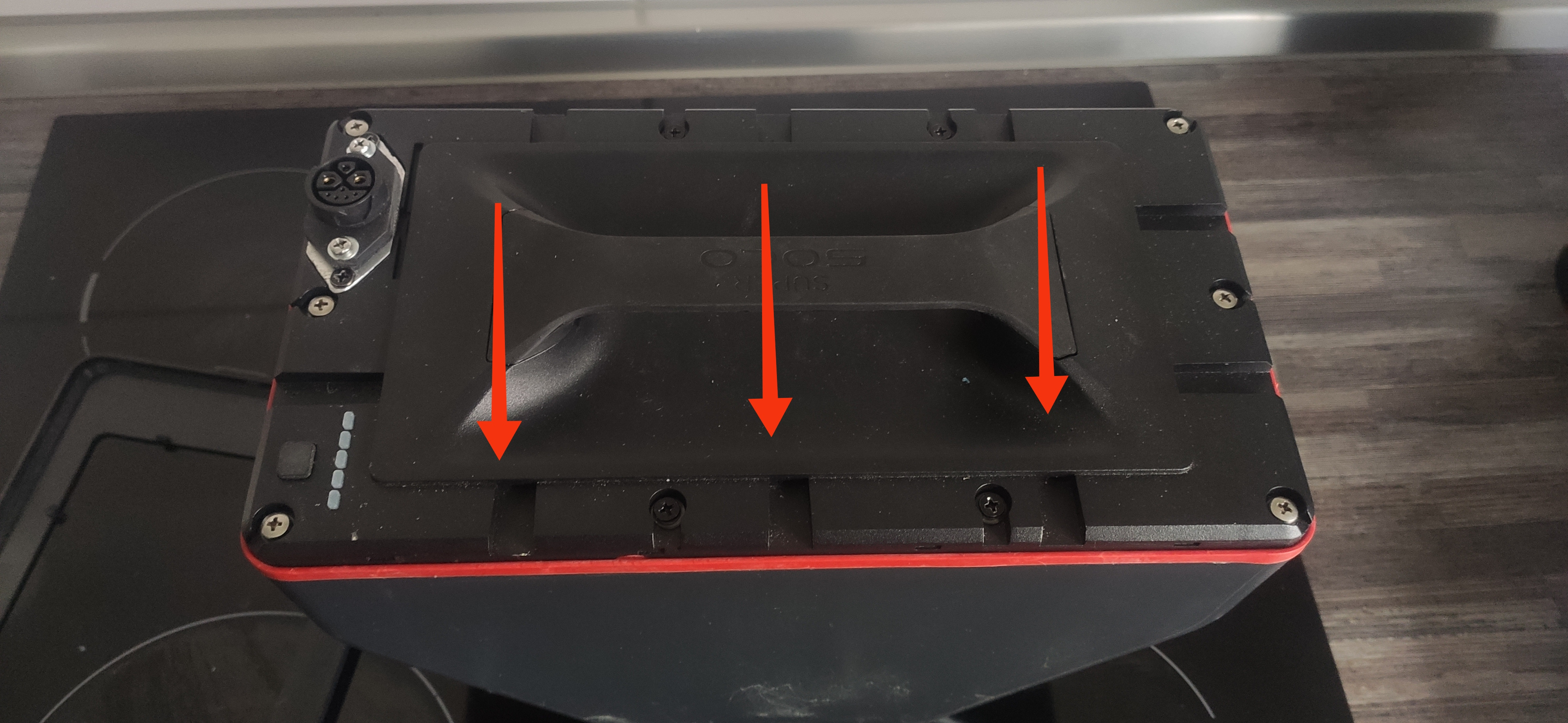 Dann hat man das Akkupack mit Deckel in der hat. Der Deckel ist am Akkupack selber mit 4 schwarzen Schrauben befestigt.